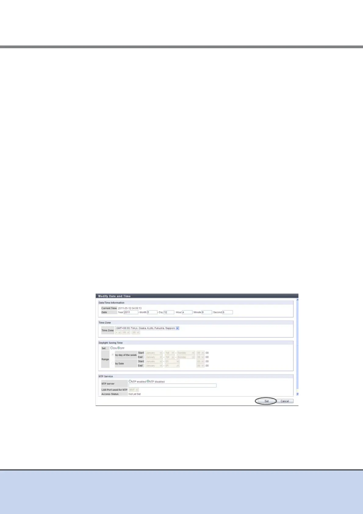 Select whether to set the Daylight Saving Time "ON" or "OFF" with the radio button.