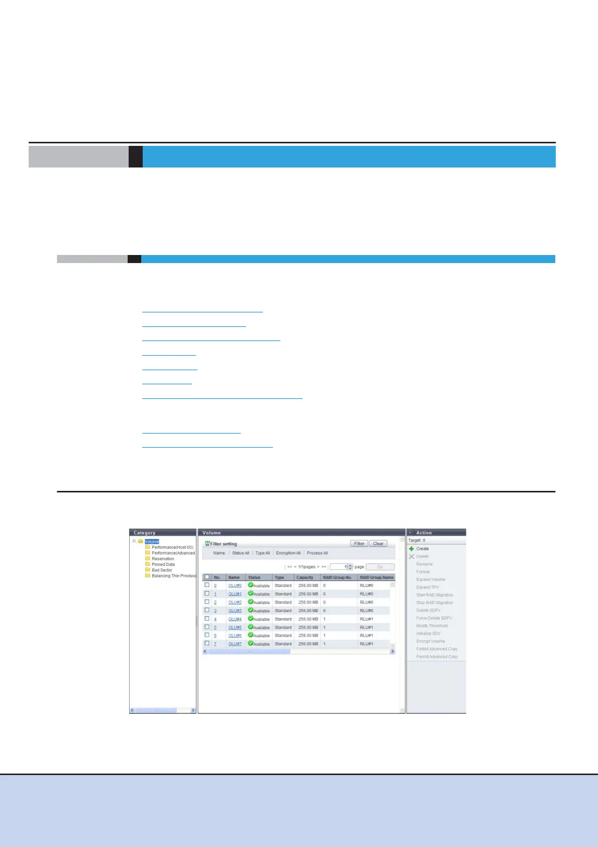 Detailed information of the volumes can be displayed from the following screens: