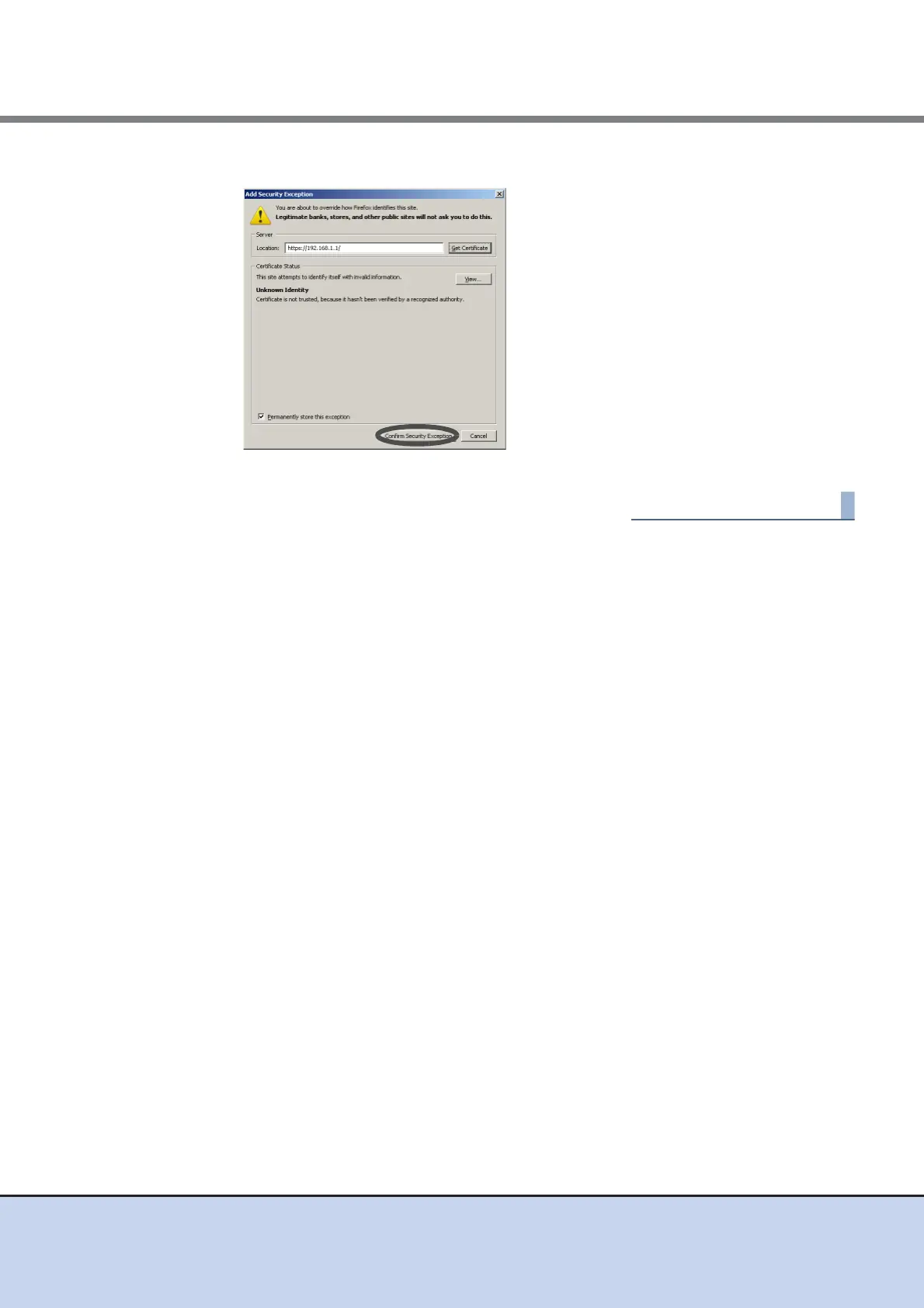 5 Click the [Confirm Security Exception] button.