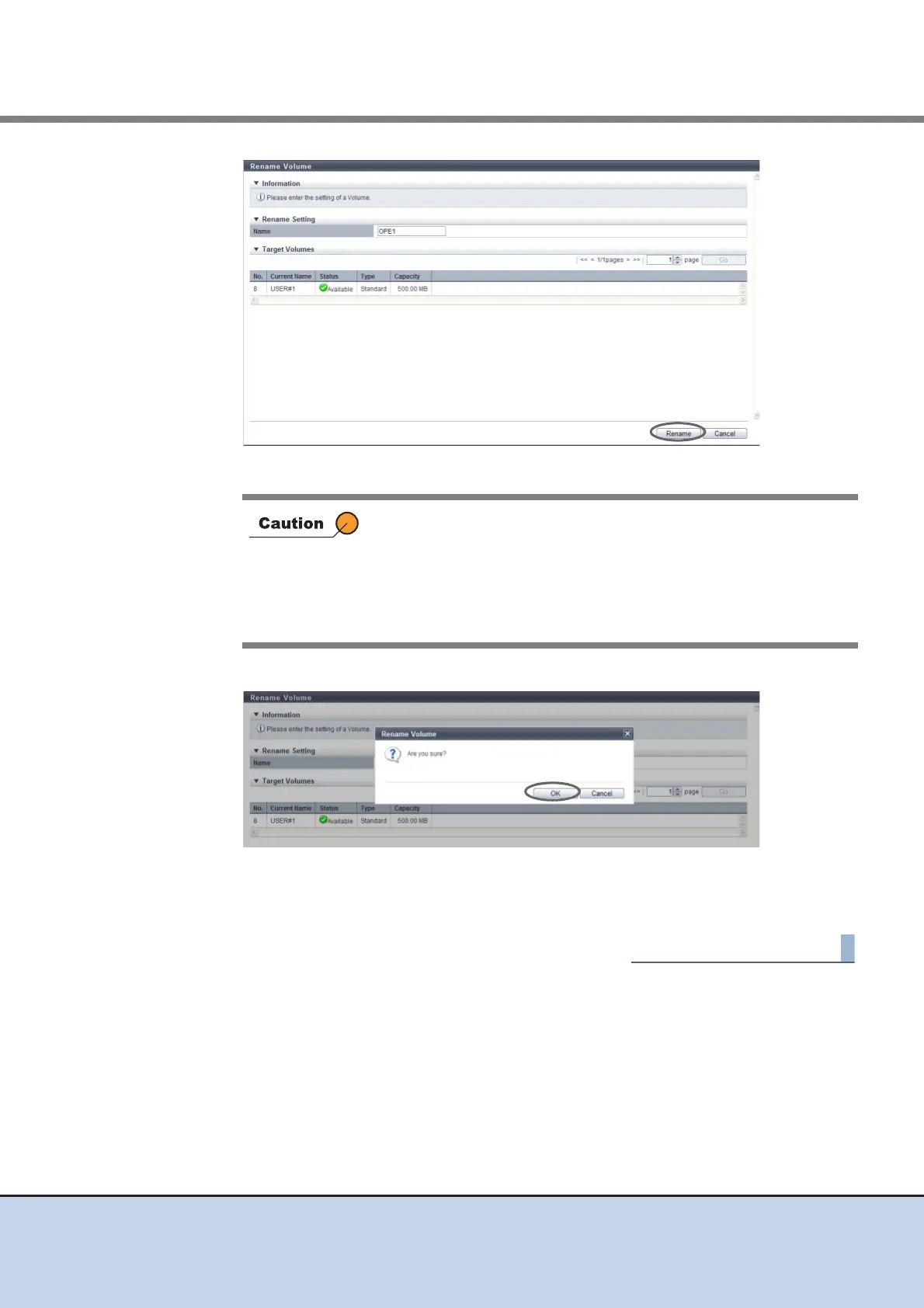 → Renaming of the volume starts.