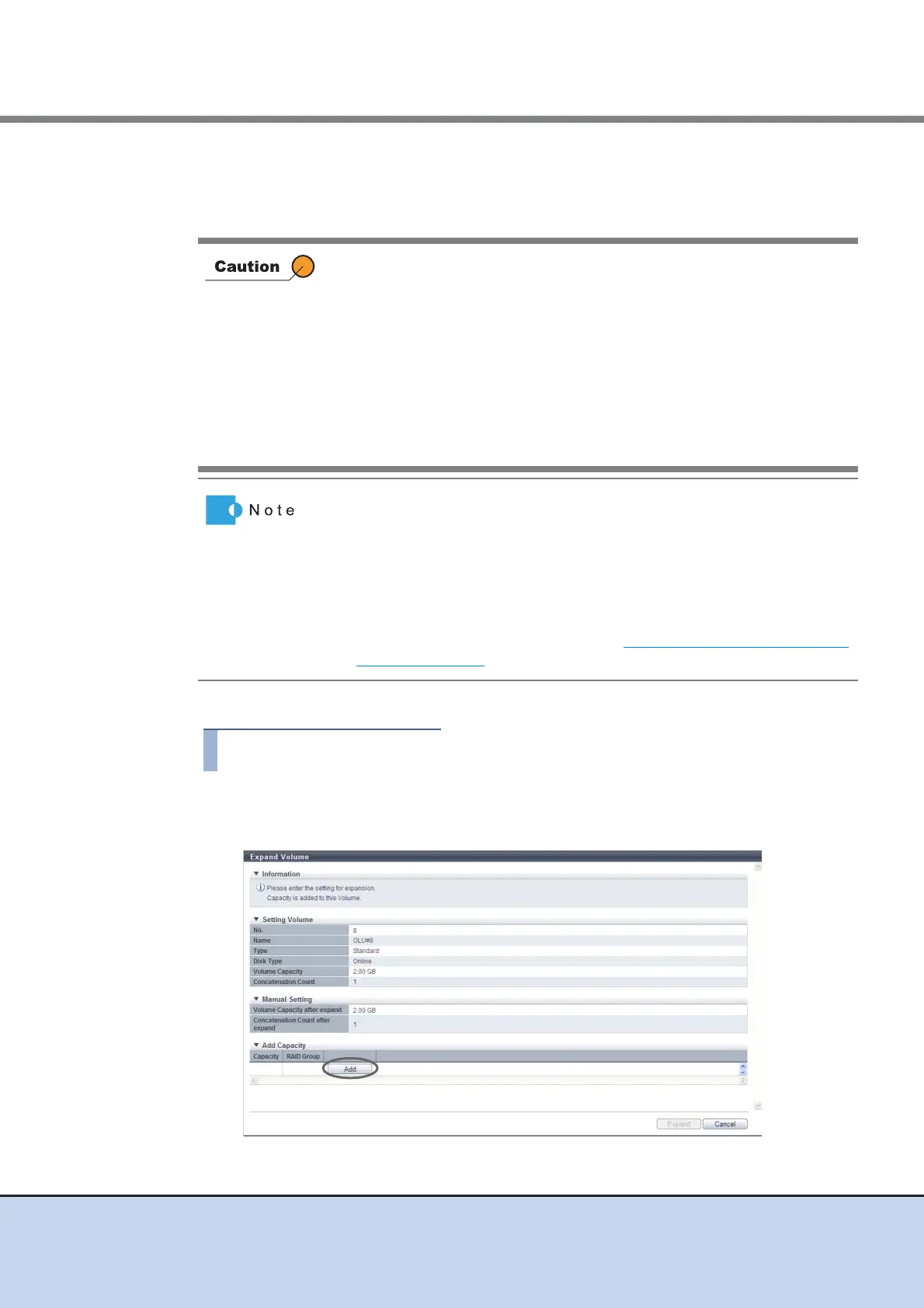 • Backing up the data before performing volume expansion is