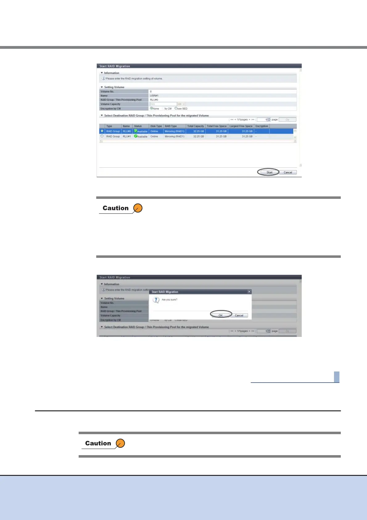 • When the destination RAID group or TPP is not selected
