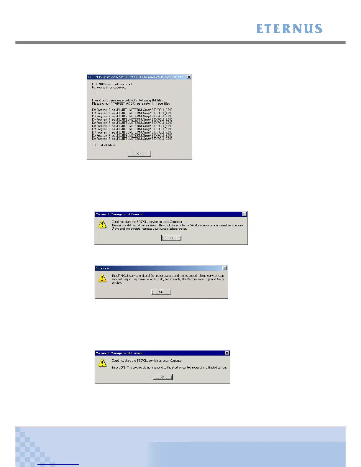 If ETERNUSmgr detects more than 10 faulty setup files, the first 10 will be listed along with the