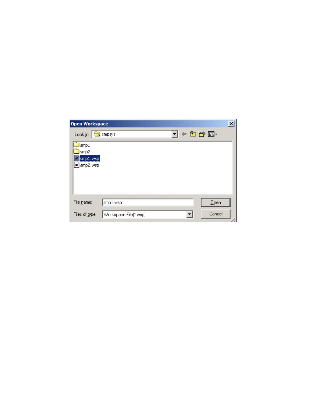 displayed. Select smp1.wsp, then click the [Open] button.