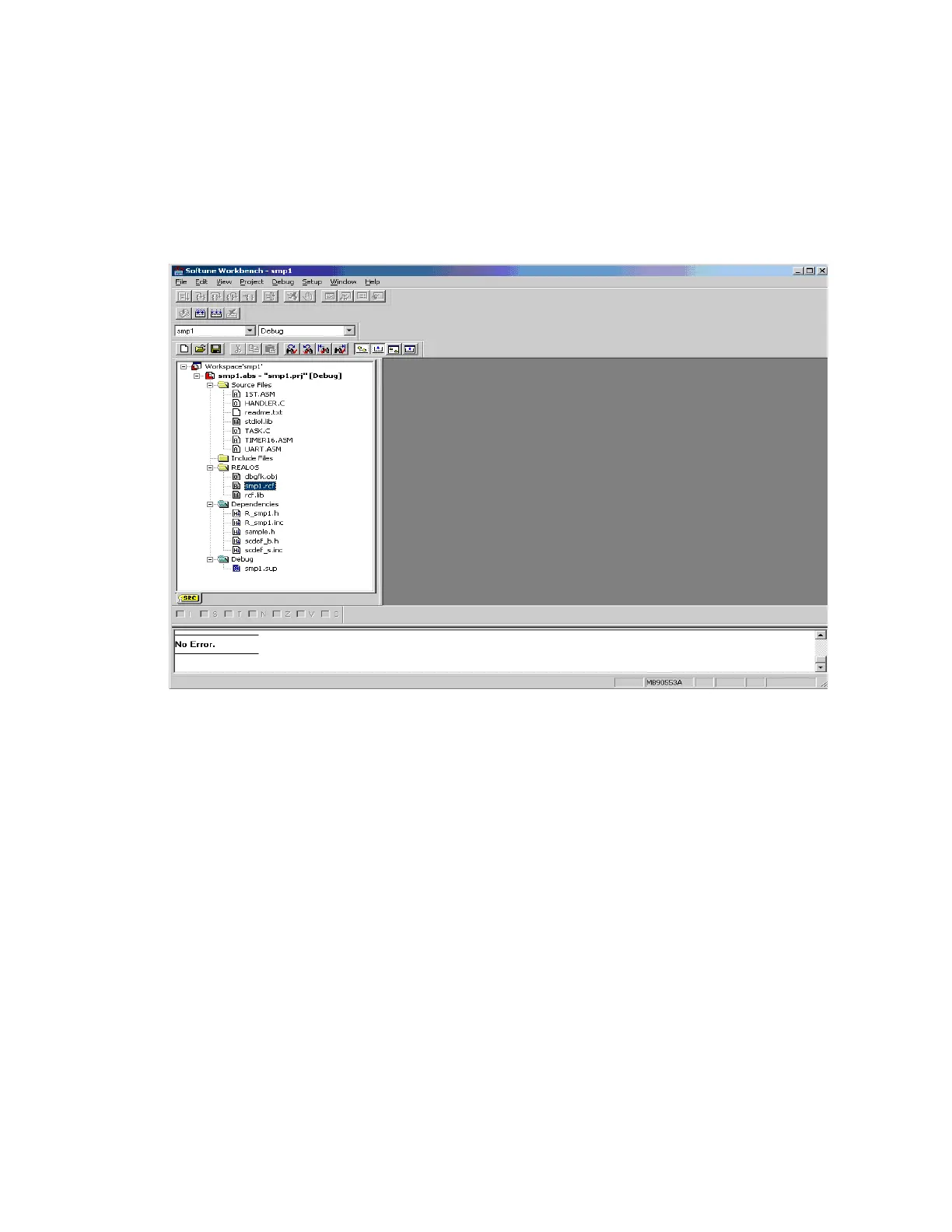 Create a load module file (absolute file). Select [Build] from the [Project] menu to execute