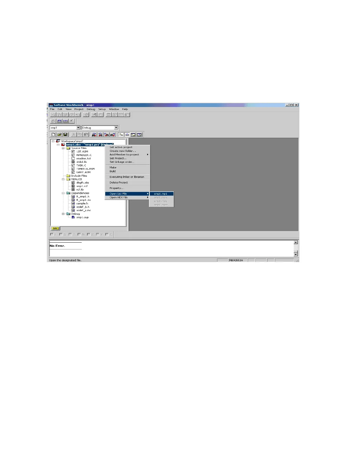 To check the memory map, select smp1.abs, then right-click to select, from the context