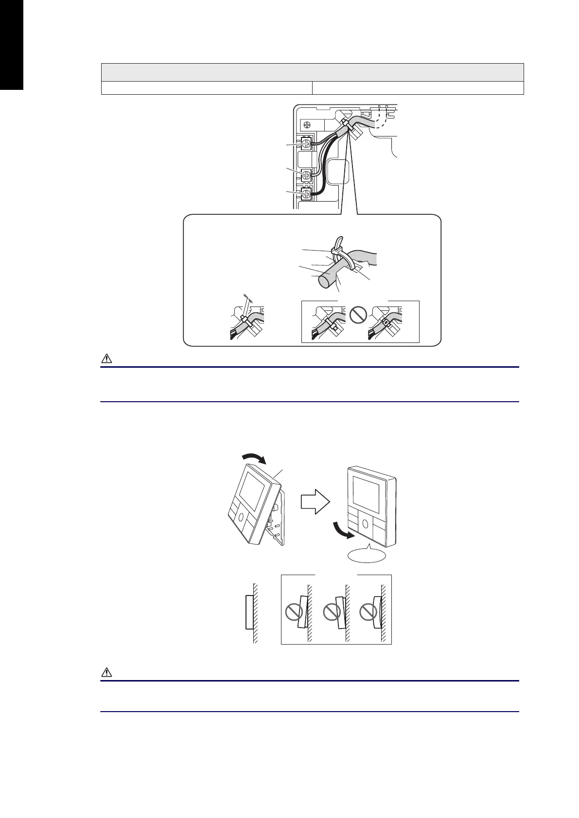 • When connecting the remote controller cables, do not over-tightening the screws.