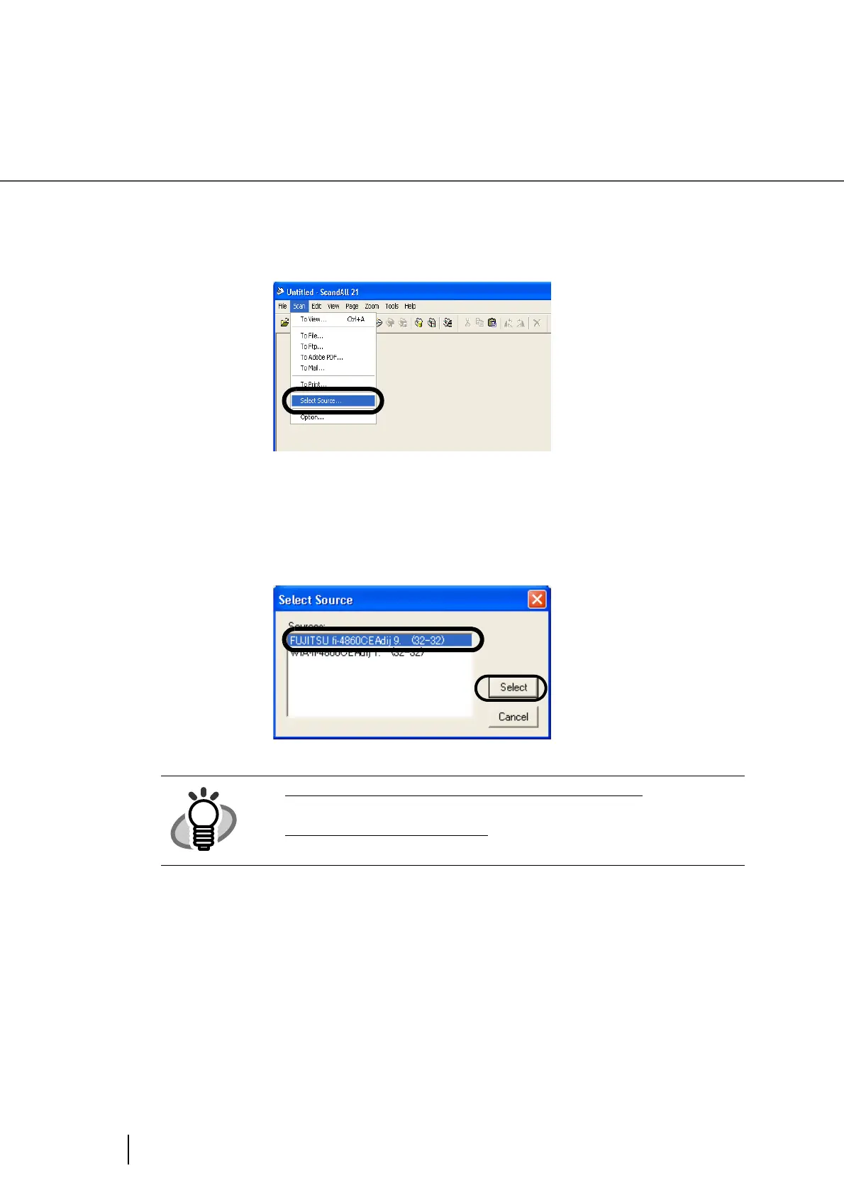 Select [Select Source...] from the [Scan] menu of ScandAll 21.