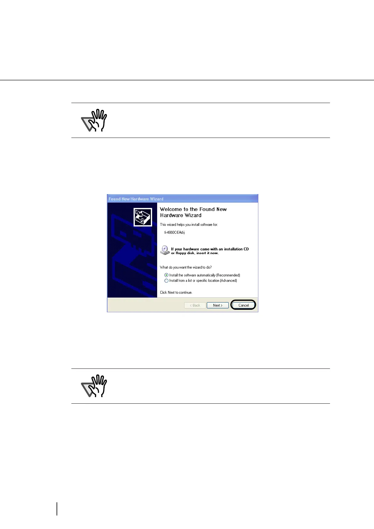 3. The scanner is detected automatically. [Found New Hardware Wizard] (or