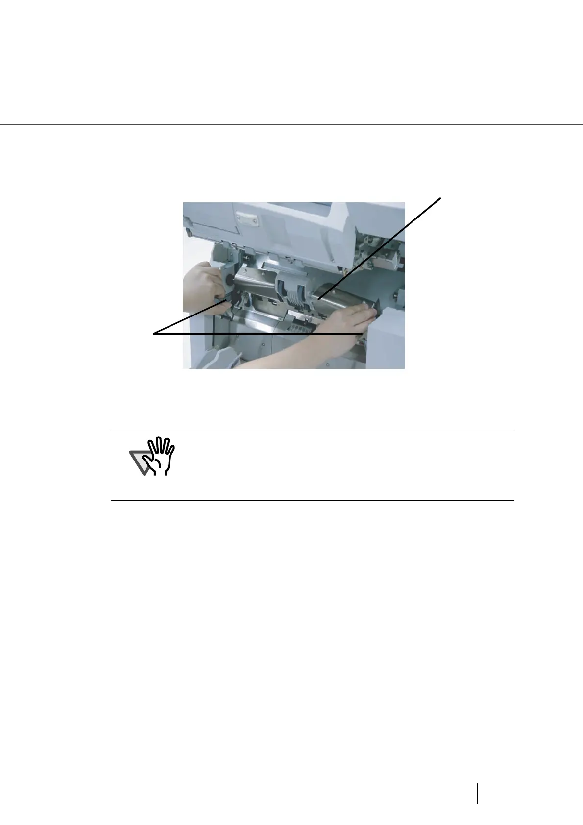 6. Lift the Upper transport unit fully to release the safety lock and then lower the