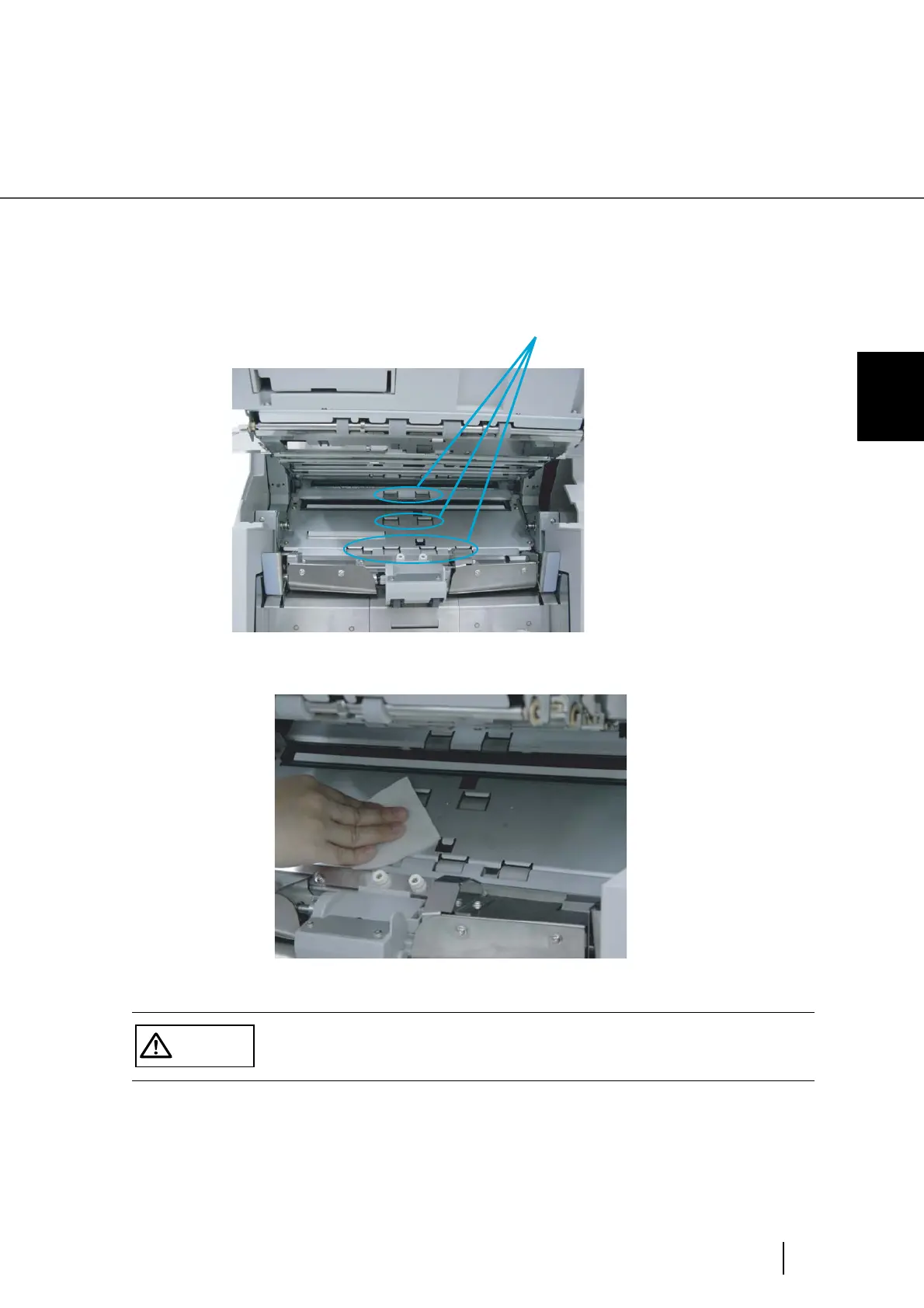 2. Wipe the metal feed rollers using a lint free cloth moistened with cleaner