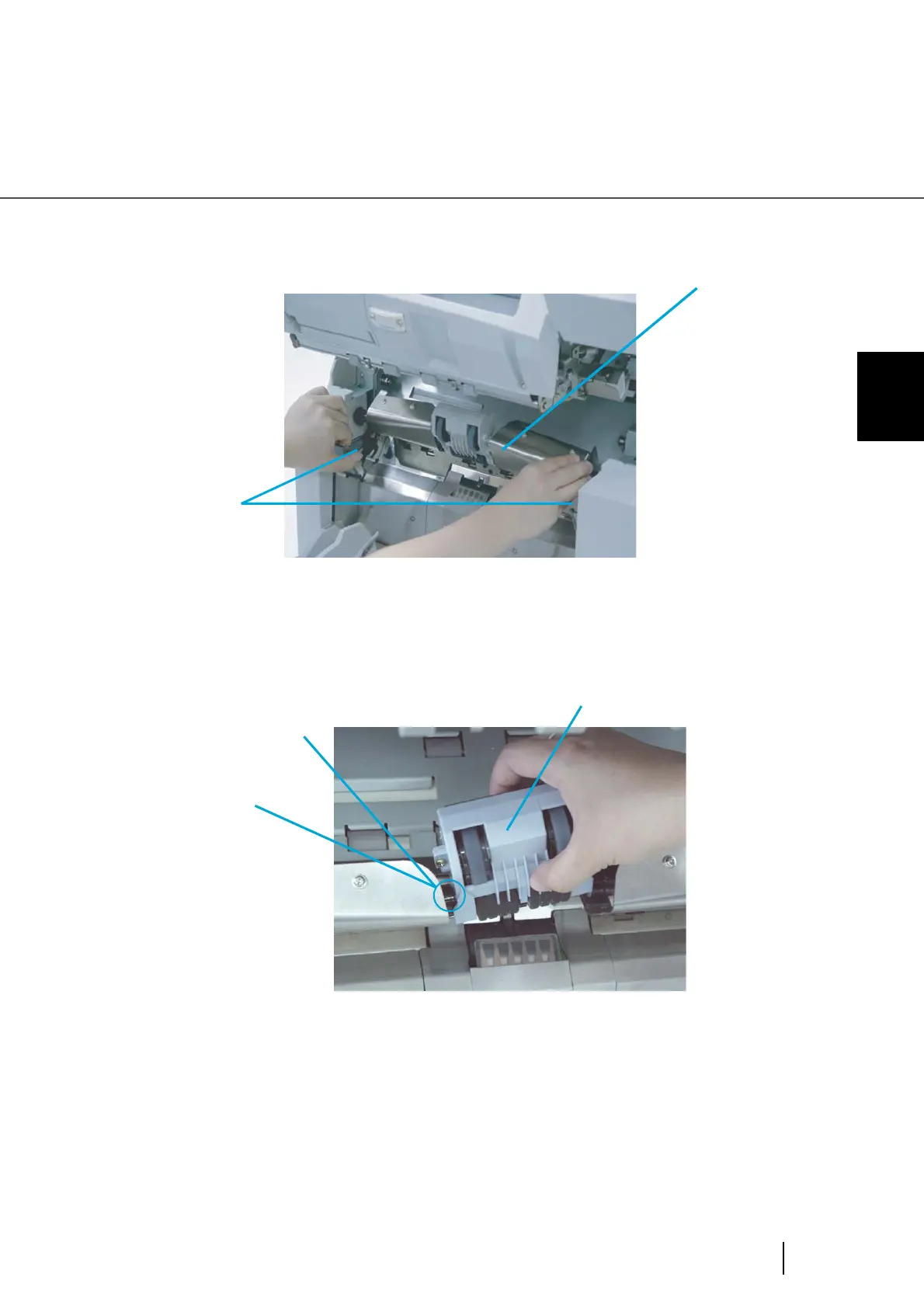 3. Slide the Pick roller unit to the left to disengage the clutch ring from the