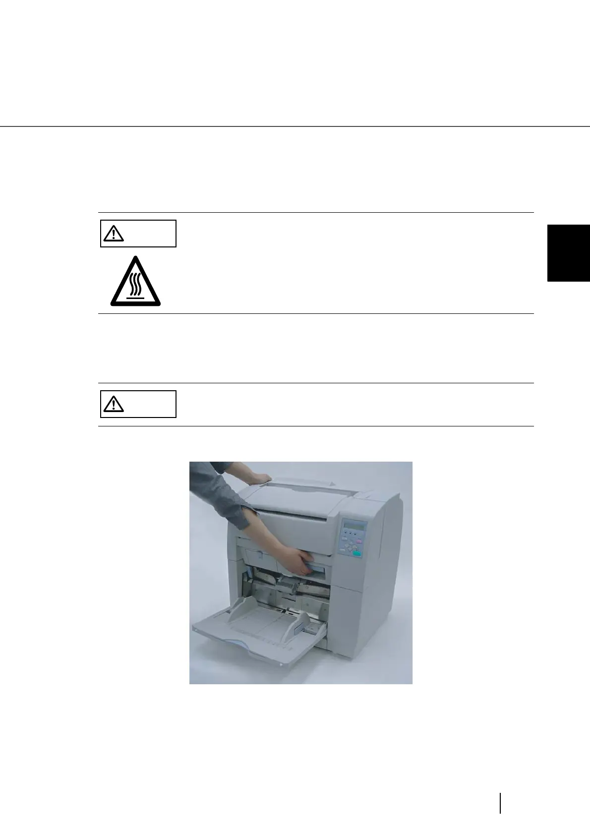 1. Remove documents from the stacker. Pull up the lever on the right front