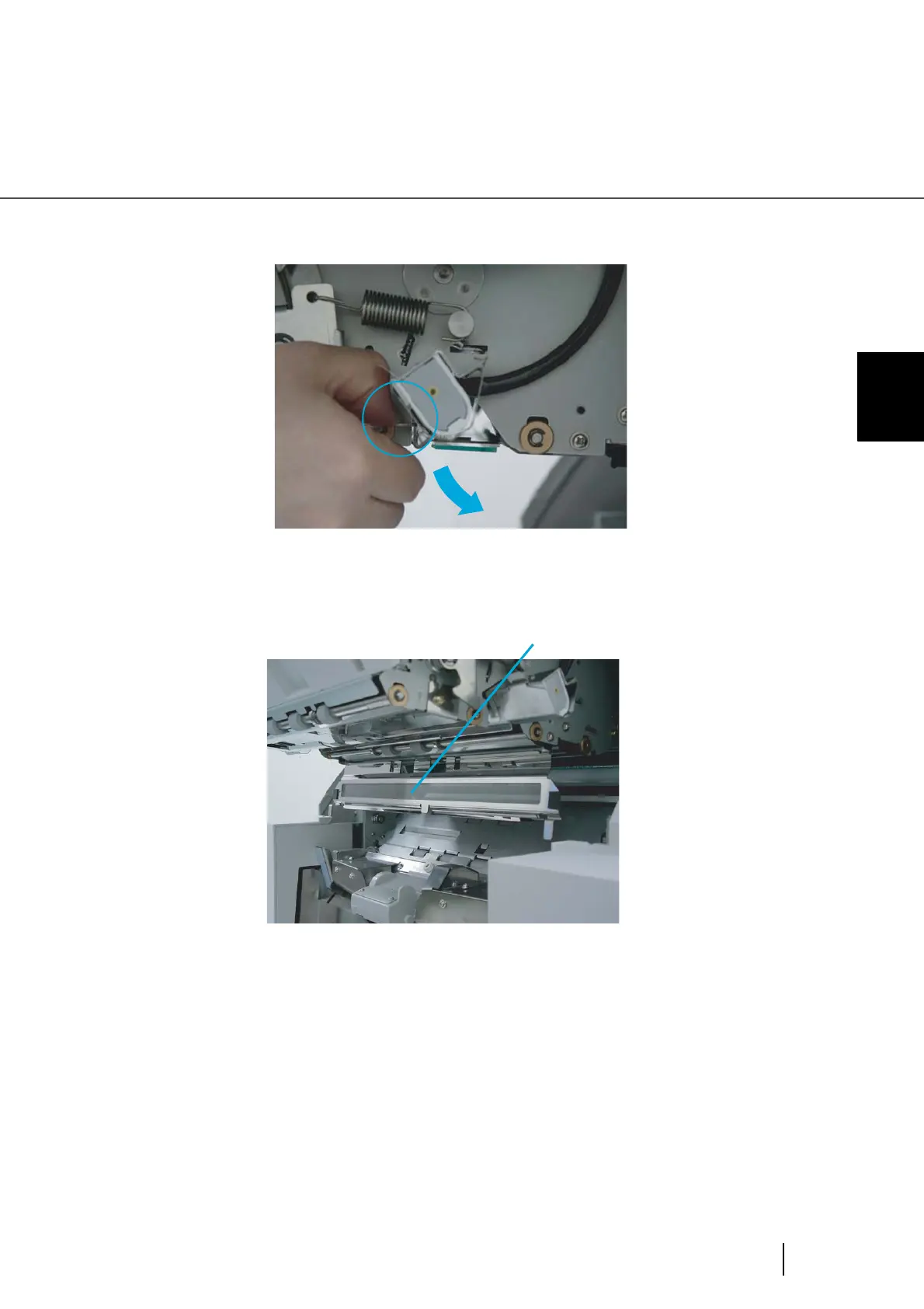 2. Push down on the Glass sheet guide tab to open the Glass sheet guide.