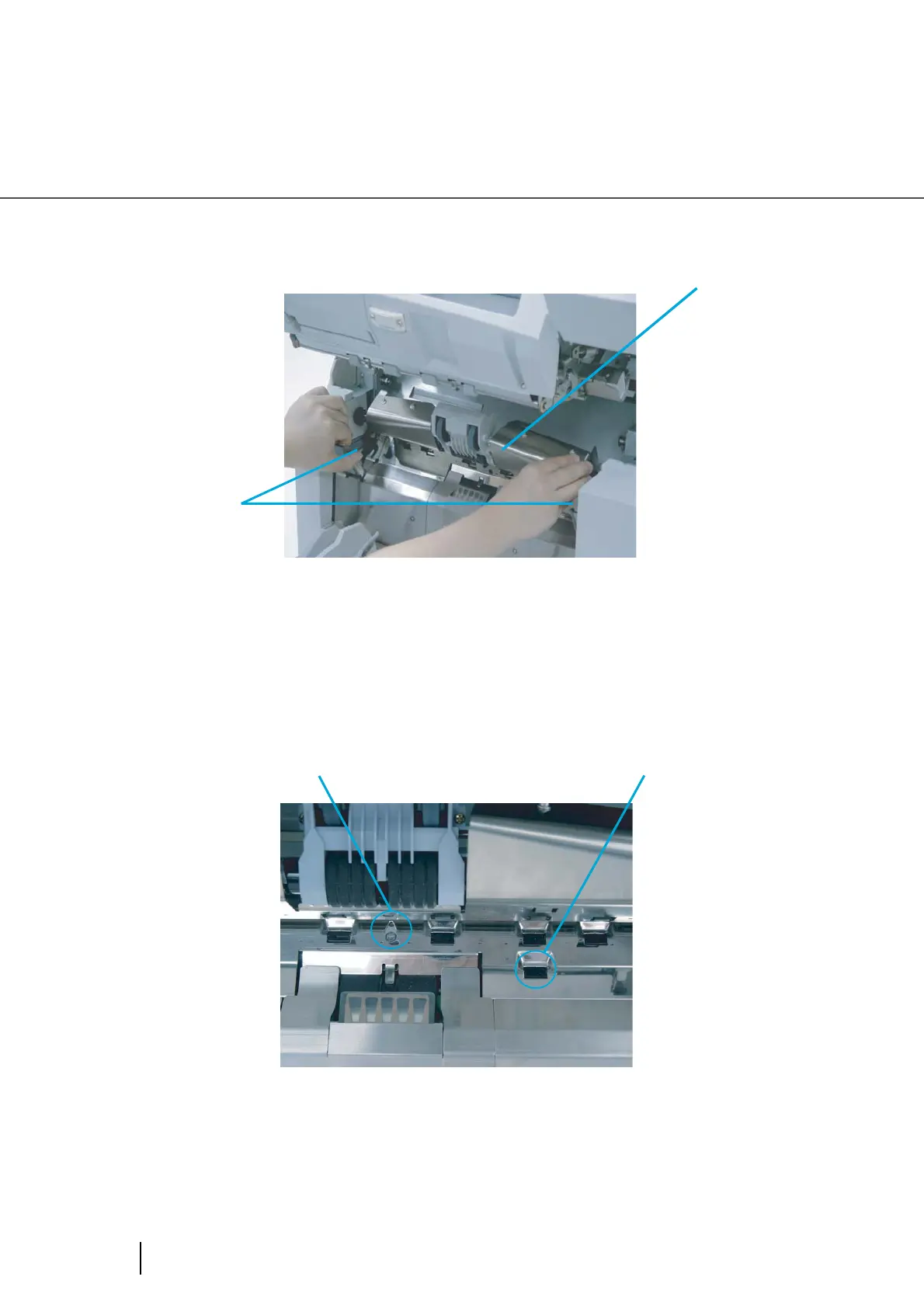 6. Lift the Upper transport unit to release the safety lock, then lower the unit