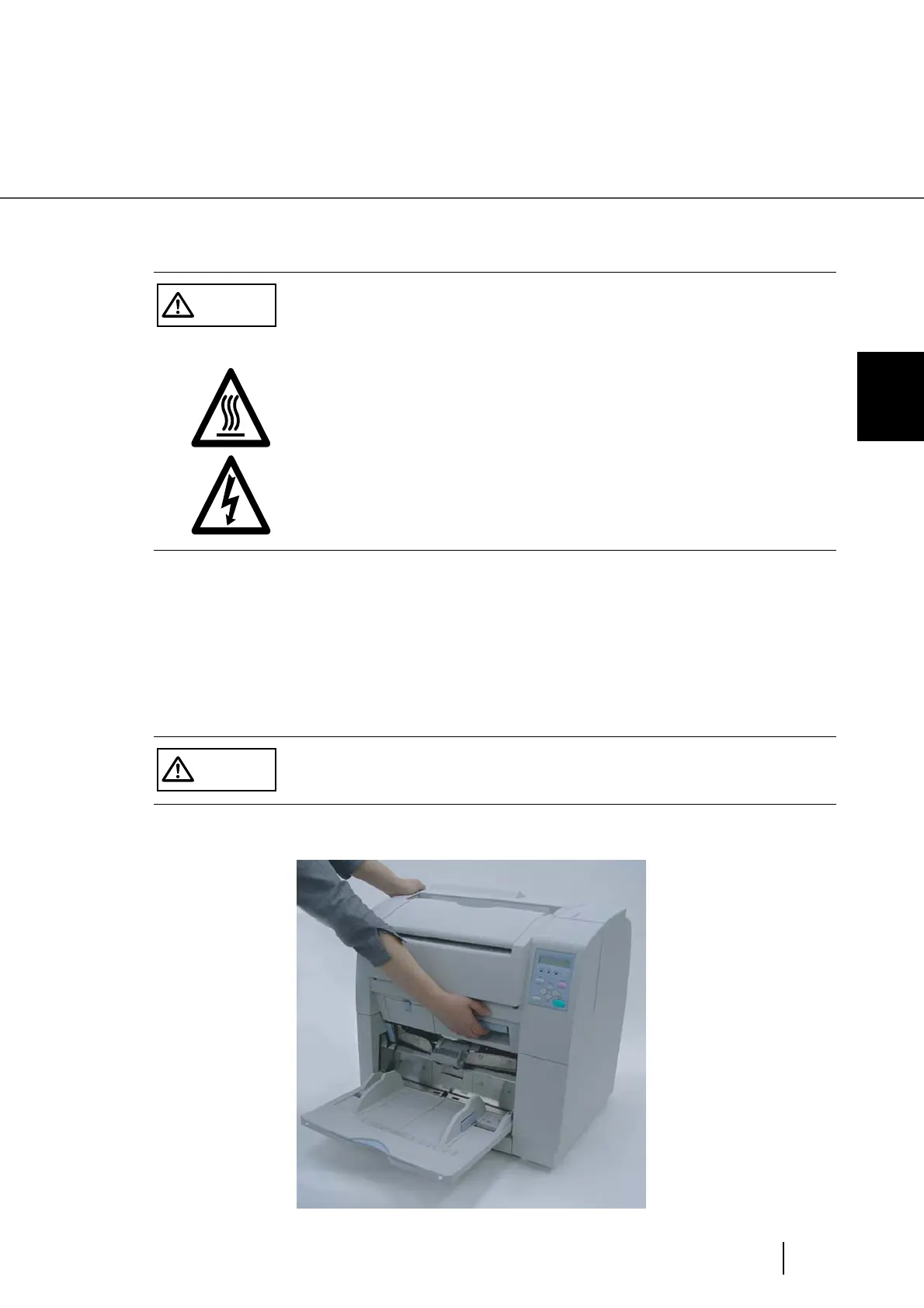 1. Remove documents from the stacker. Pull up the lever on the right front