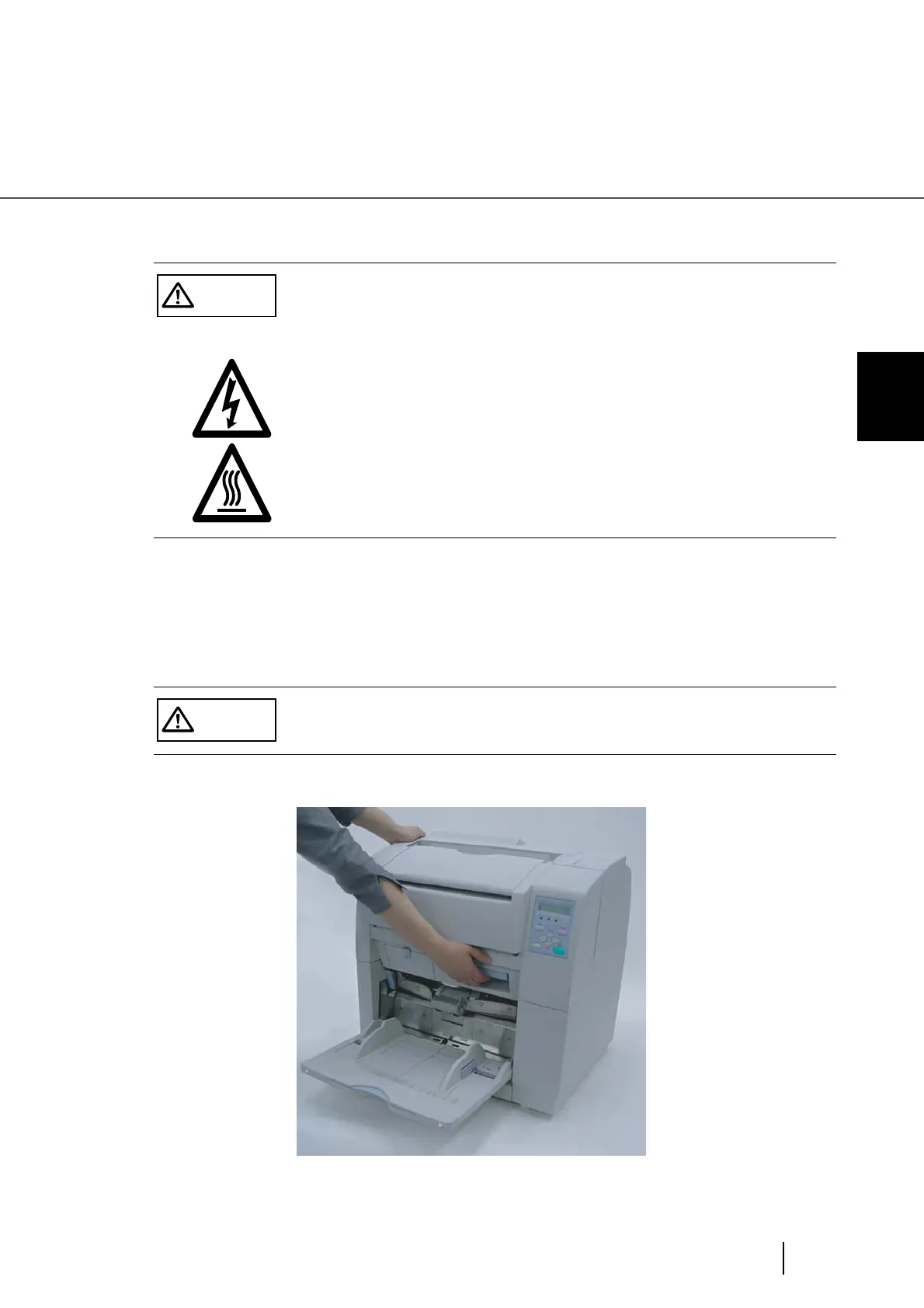 1. Remove documents from the stacker. Pull up the lever on the right front