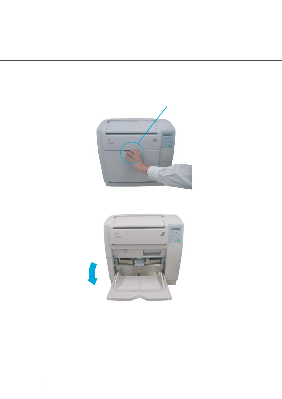 1. Gently flip down the Hopper table by pulling the blue handle.