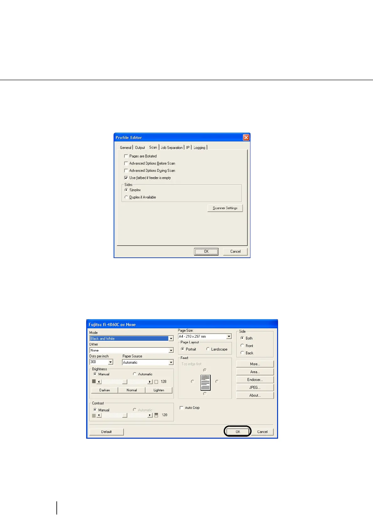 Select the [Scan] tab and click the [Scanner Settings] on the [Profile Editor]