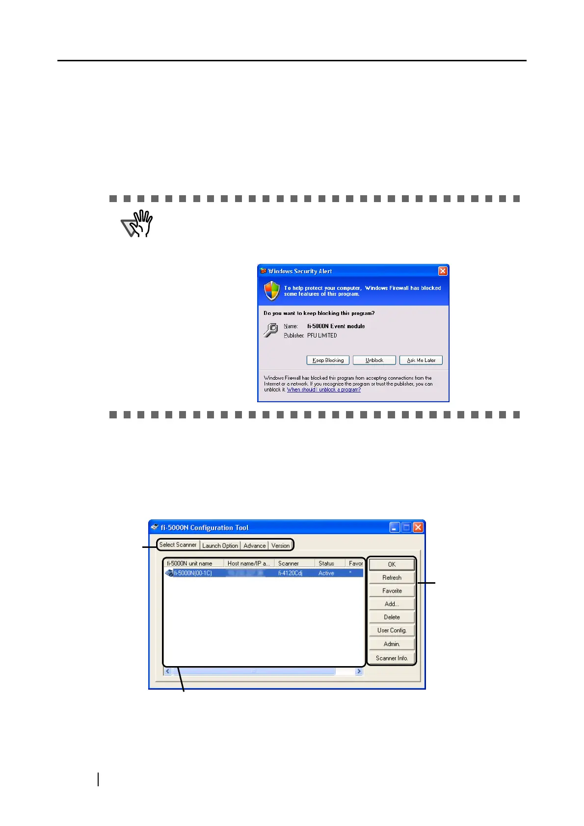 box may appear when starting up fi-5000N Software. If [Keep Blocking] is