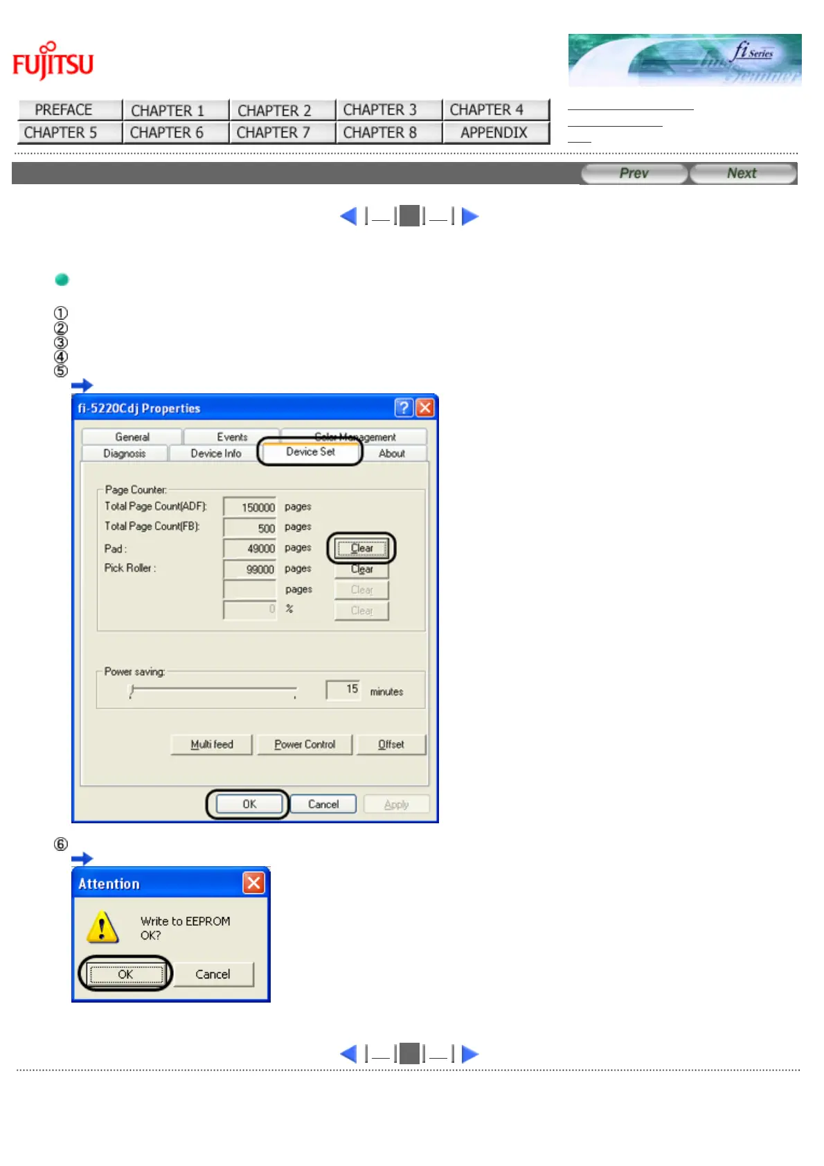 After clicking the [Clear] button beside "Pad" in "Page Counter", click the [OK] button.