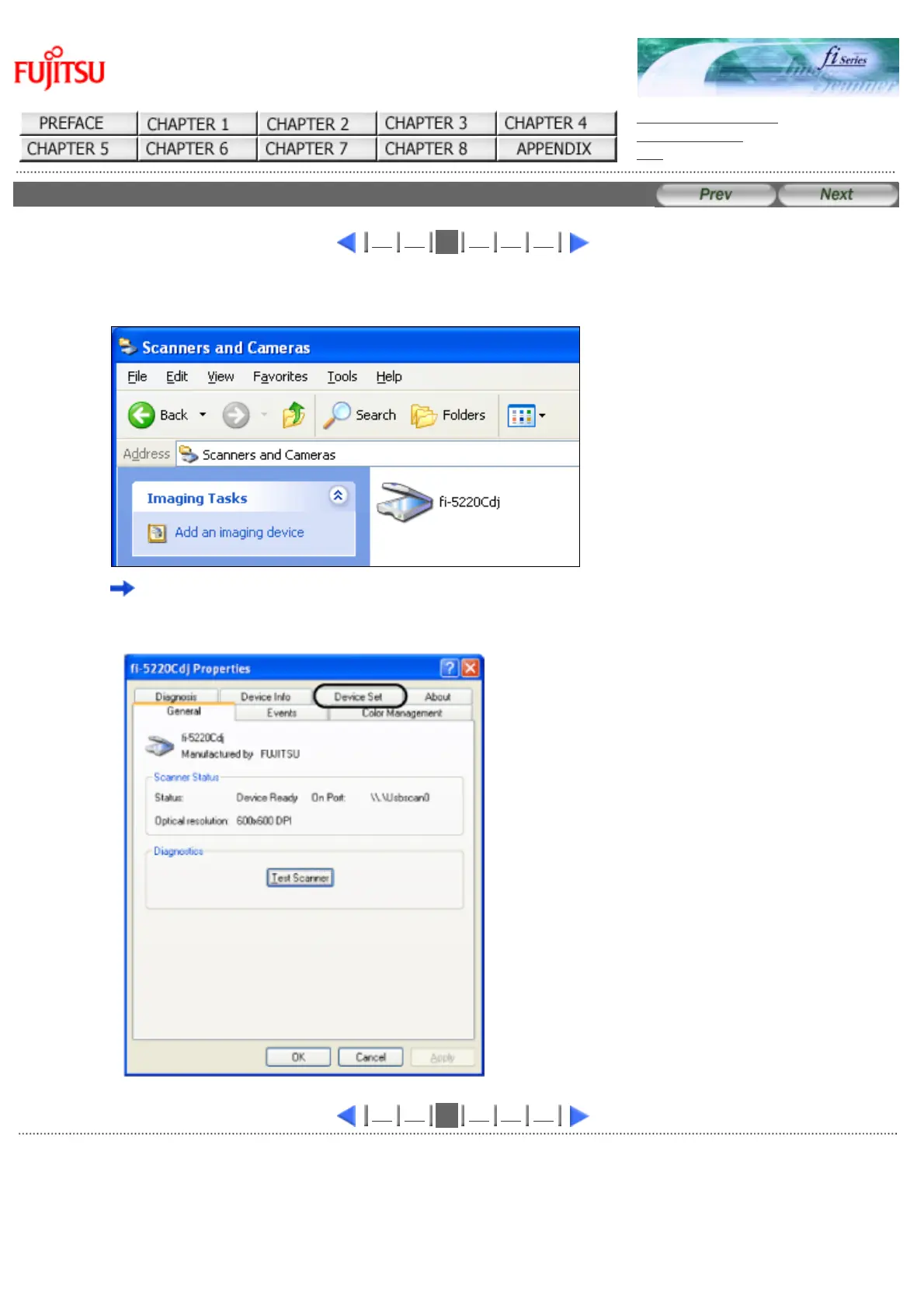 The properties dialogbox of fi-5120C or fi-5220C appears.