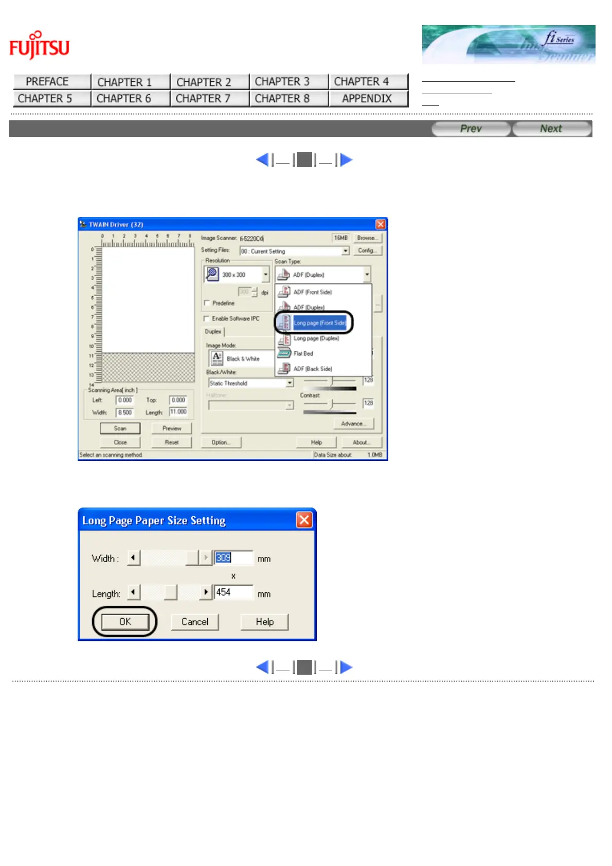 6. Select [Long page (Front Side)] or [Long page (Duplex)] from [Scan Type].
