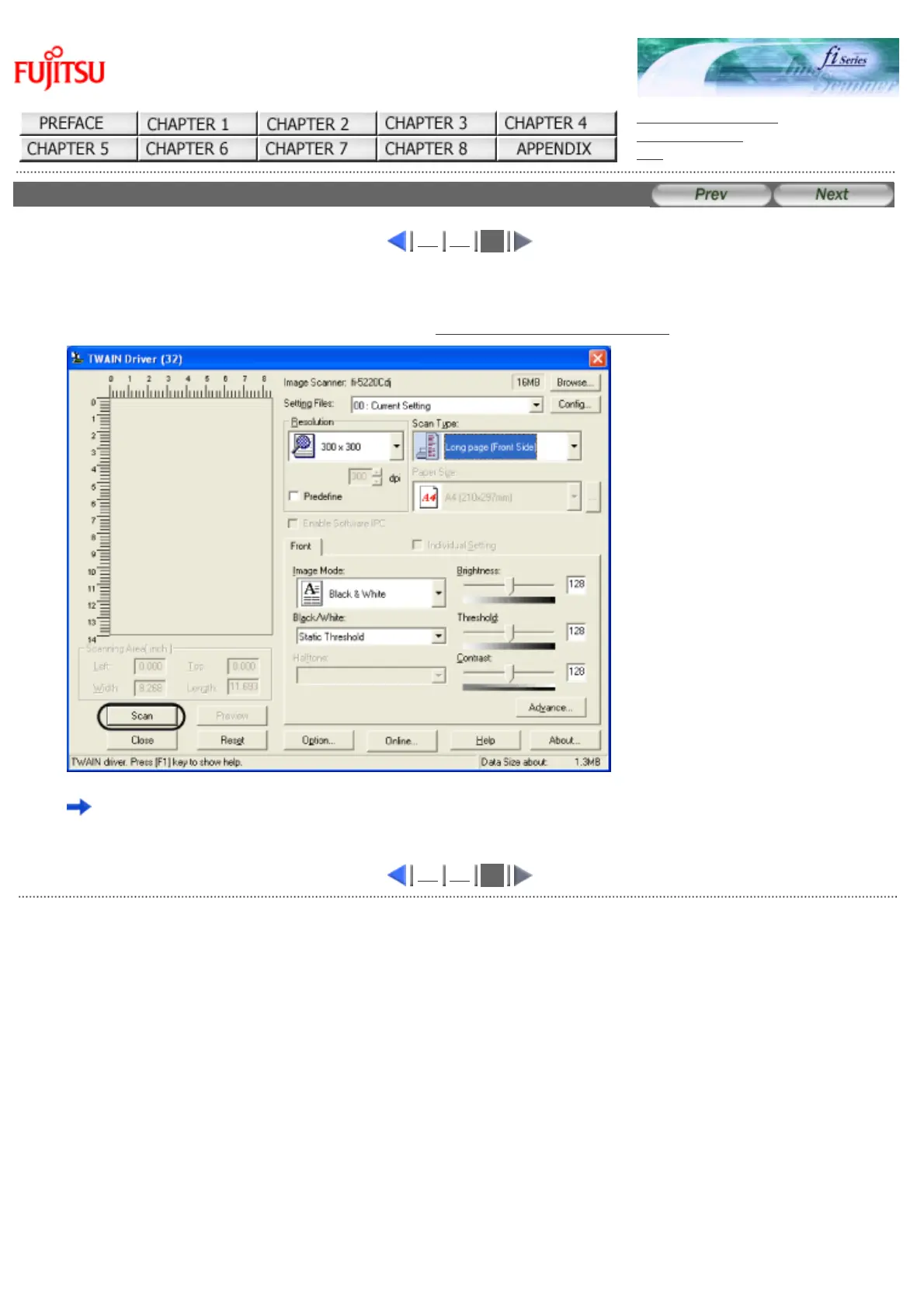 For settings in the [TWAIN Driver] dialogbox, refer to "2.5 How to Use the Scanner Driver" .