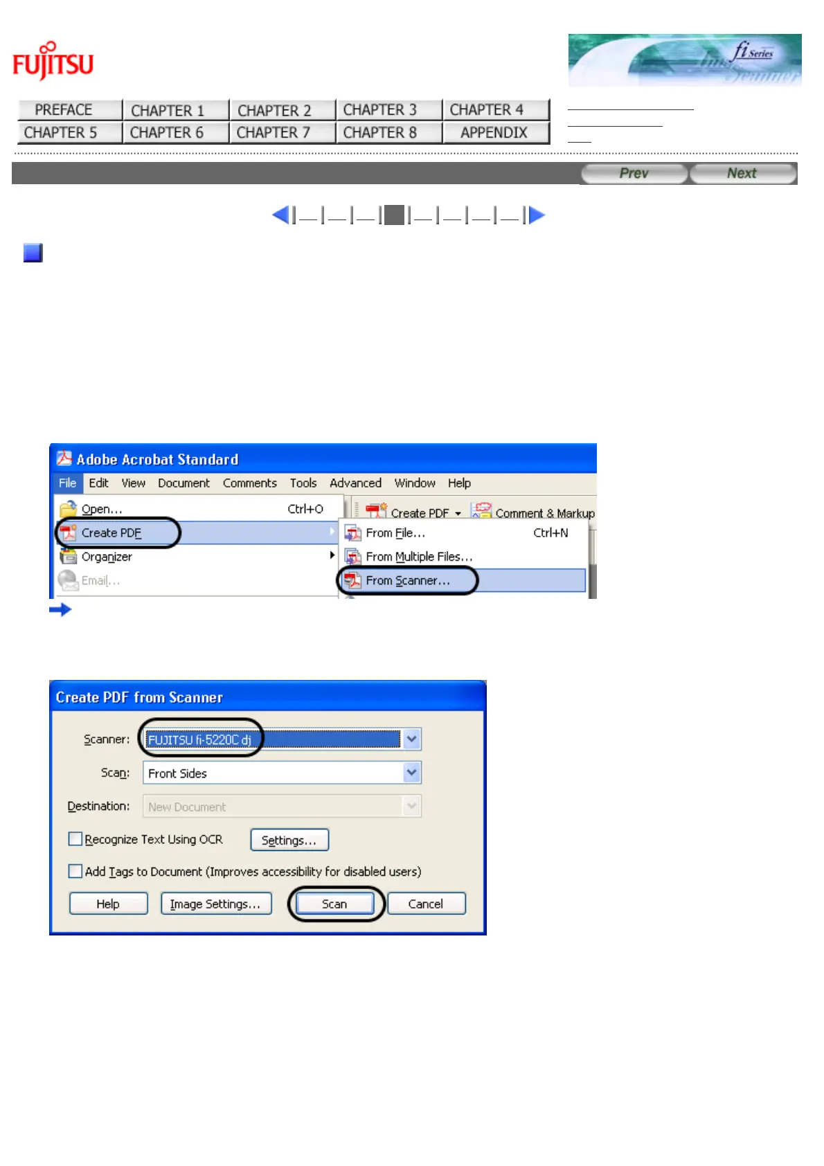 4. Select "FUJITSU fi-5120Cdj or "FUJITSU fi-5220Cdj" at [Scanner] and click [Scan] button.