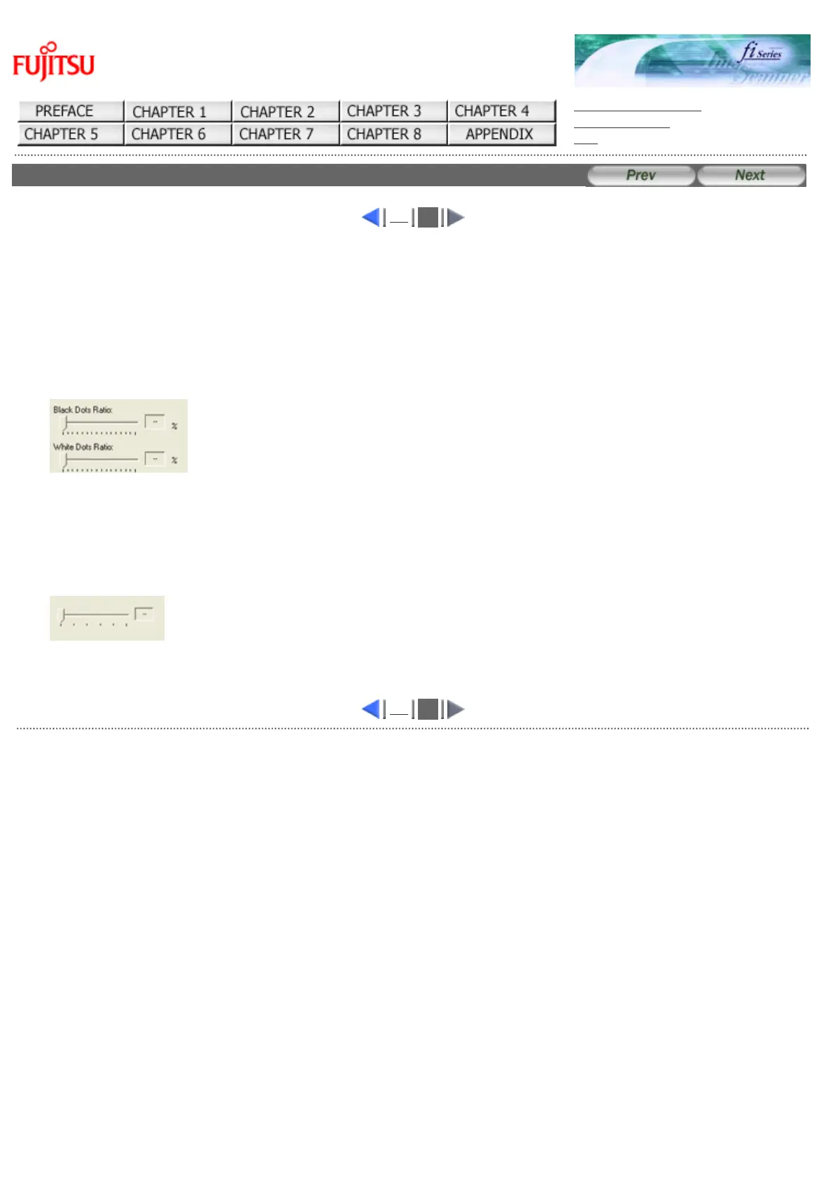 For white pages, use the [Black Dots Ratio] slider bar to set the skip condition. For black pages, use the [White Dots