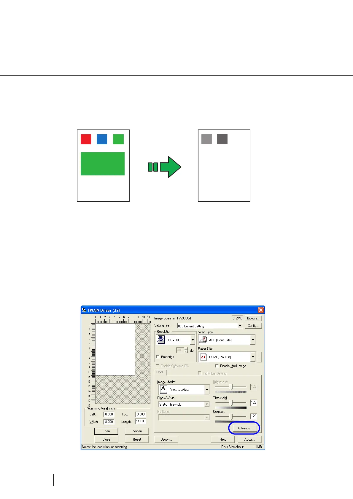 2. Click [Advance...] button in the [TWAIN Driver] dialog box.