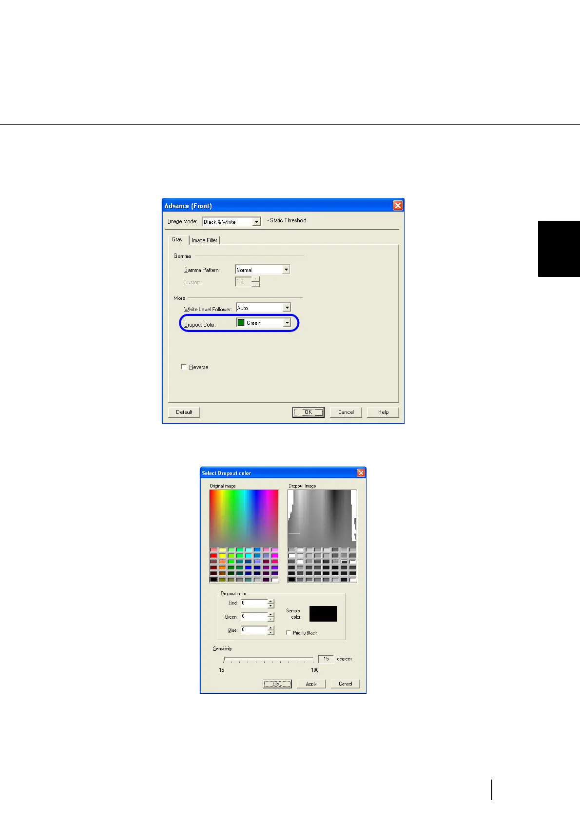 3. Select the color to be dropped out from [Dropout Color] under [More].