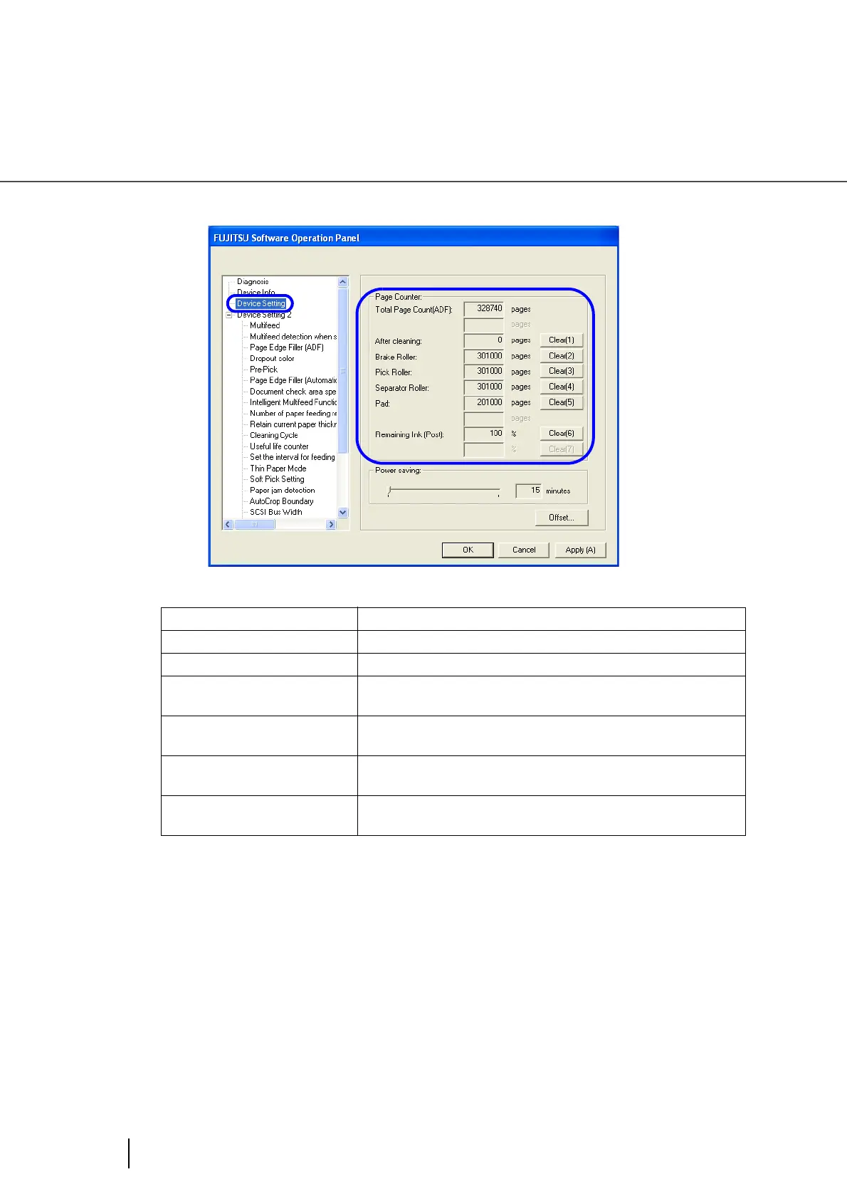 Separator Roller: The number of sheets, scanned since last exchange of the Separa-