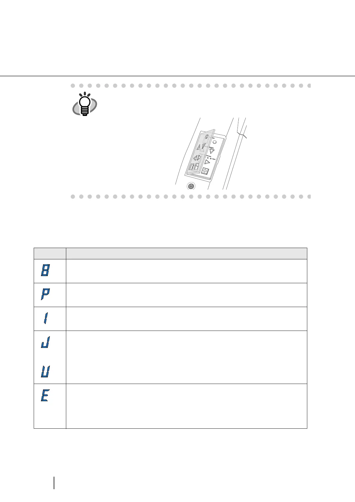 To return the scanner to the ready status (“1”), press the “Scan” or “Send to” button while the error