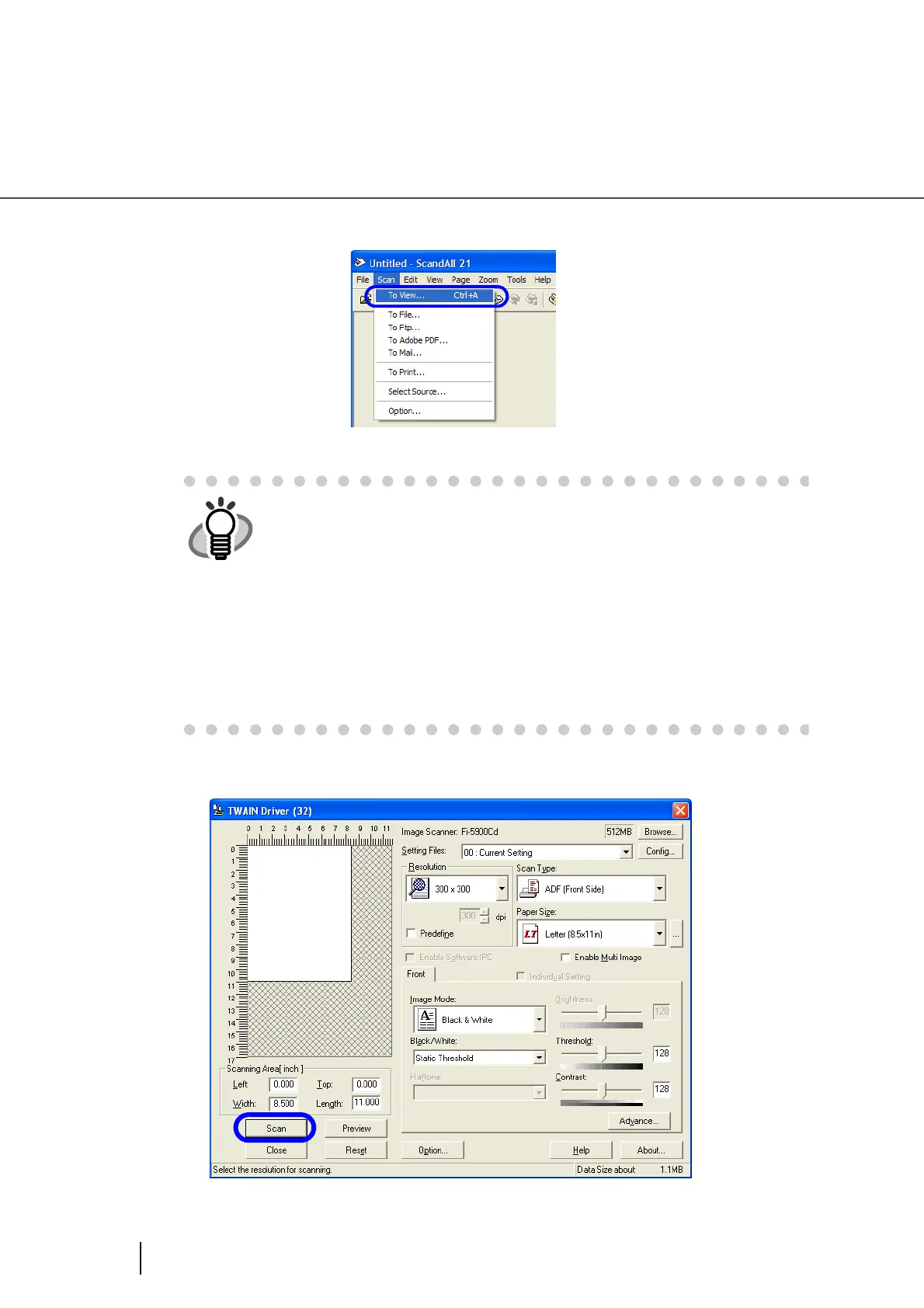• [To FTP...:]:Transfers scanned images to a FTP server.