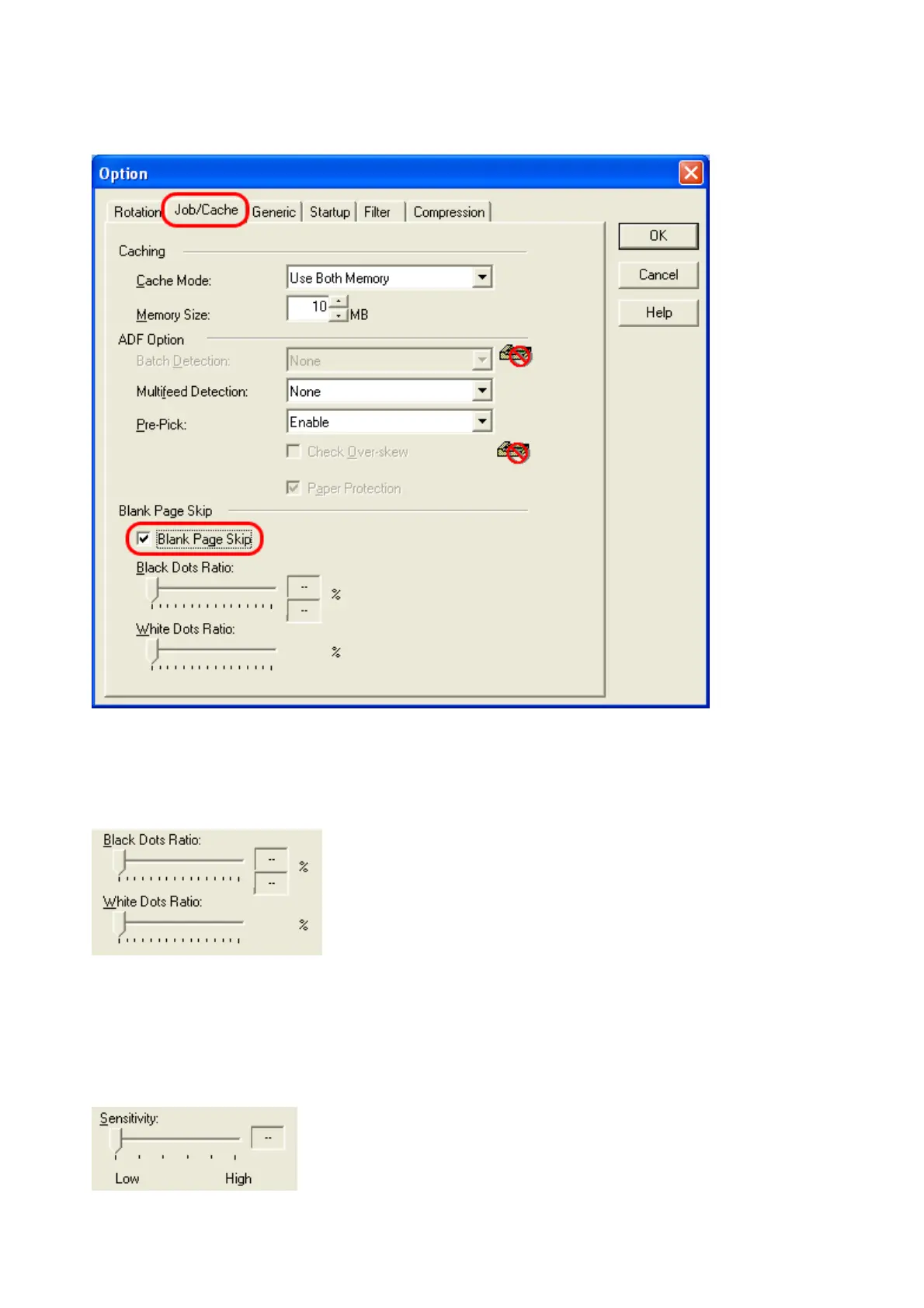For white pages, use the [Black Dots Ratio] slider bar to specify a degree of accuracy needed to skip blank pages. For