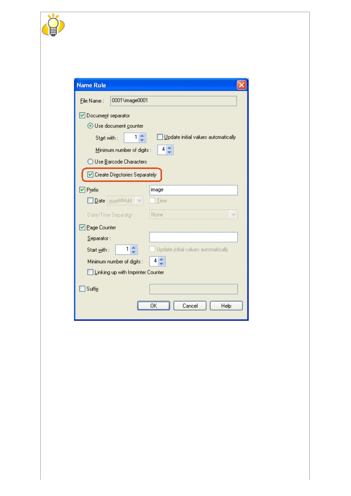 Mark the [Create Directories Separately] checkbox in the [Name Rule] dialog box.