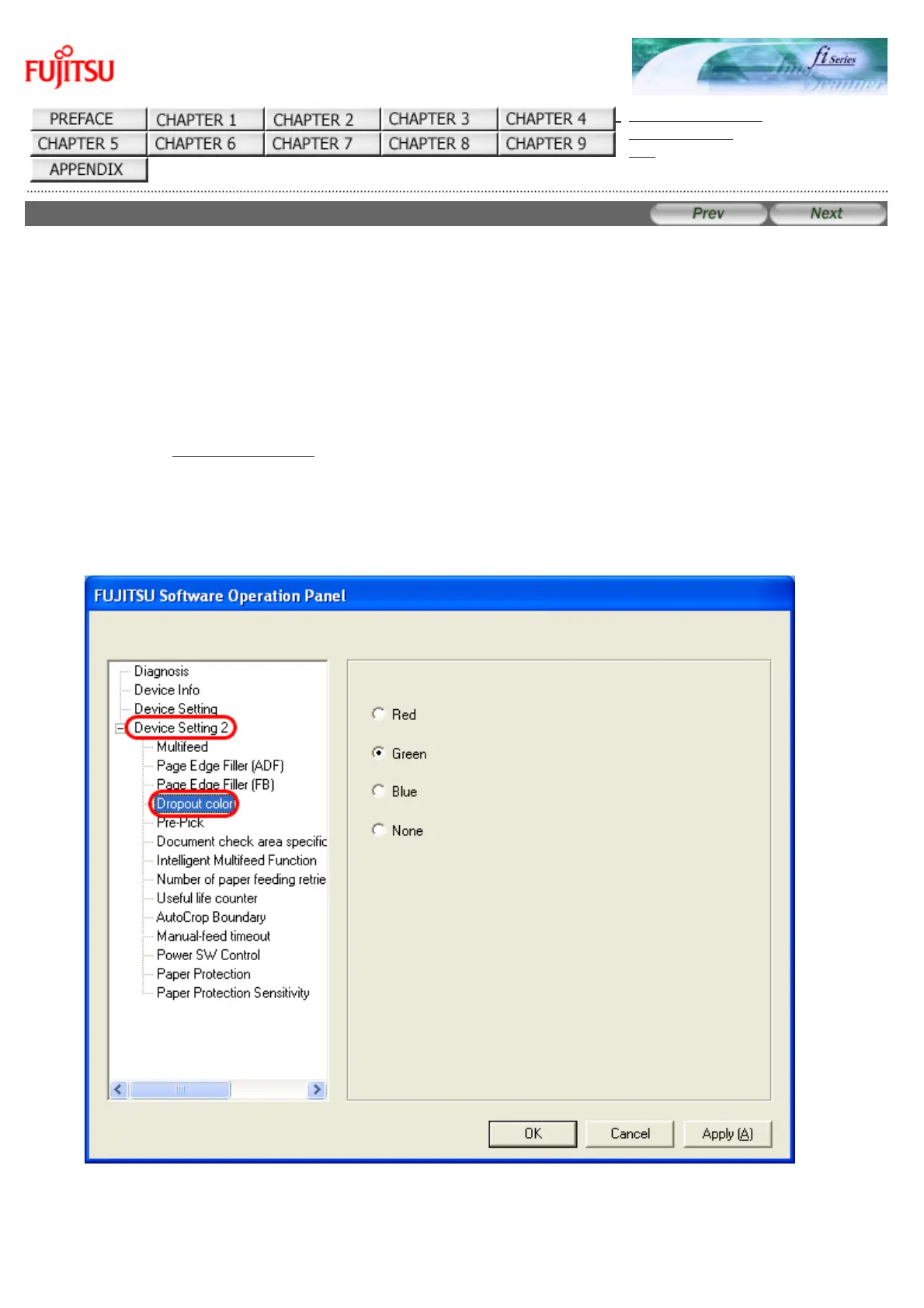 2. Select [Device Setting 2] from left side list in the window, and select [Dropout Color] from its lower