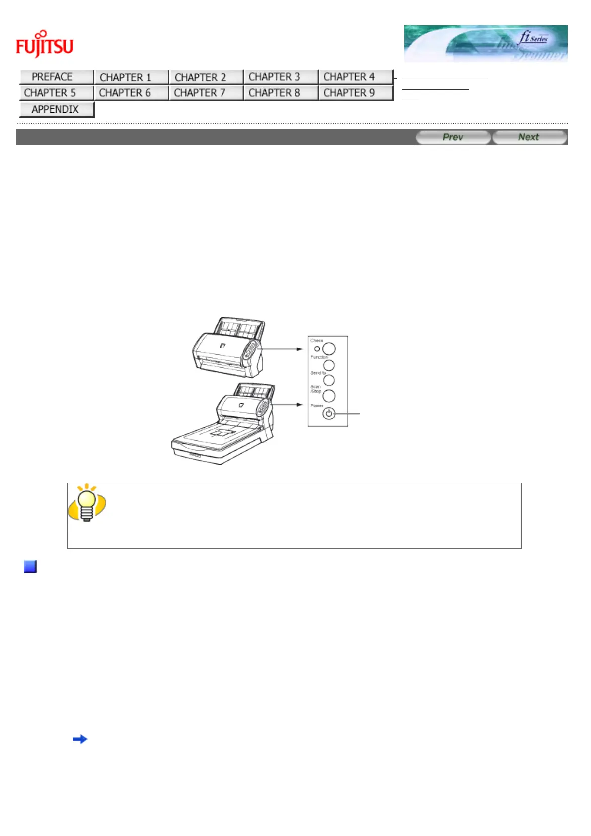 The following shows the procedure for turning the scanner ON.