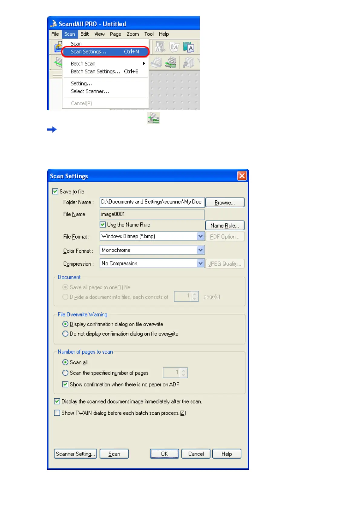 Or, select the [Scan Settings] button ( ) on the toolbar.
