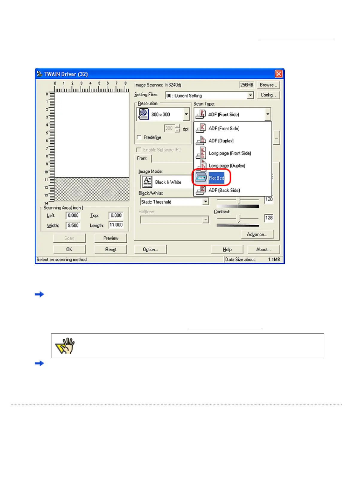 5. From ScandAll PRO, display the setup dialog box of FUJITSU TWAIN 32.