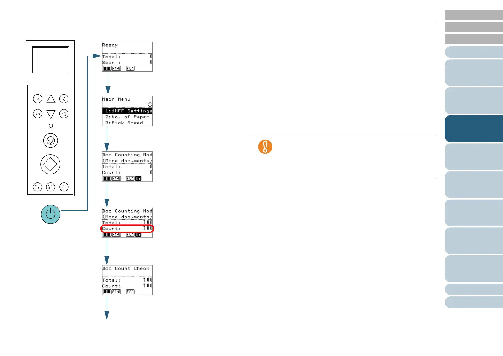 [Doc Count Check Mode] is displayed on the LCD.