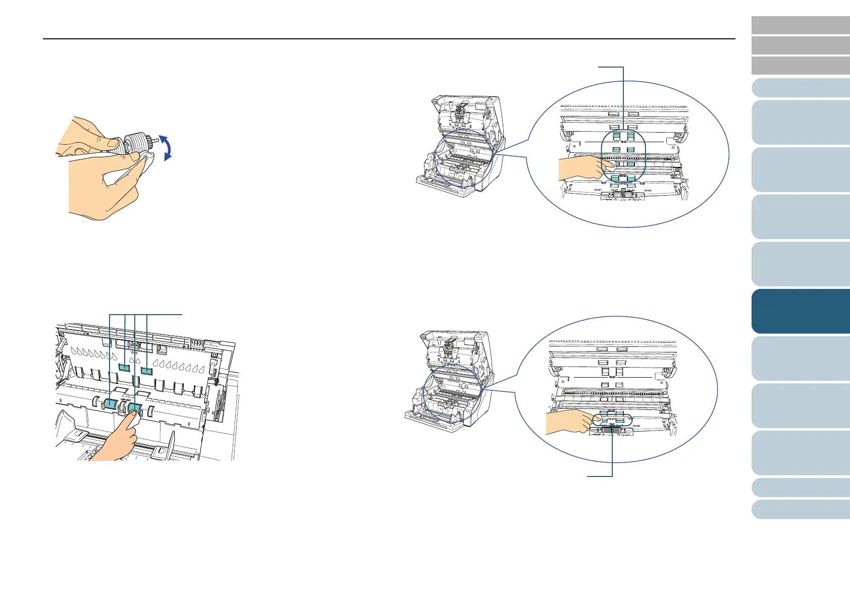 Wipe along the grooves of the roller surface. Remove the roller for easier
