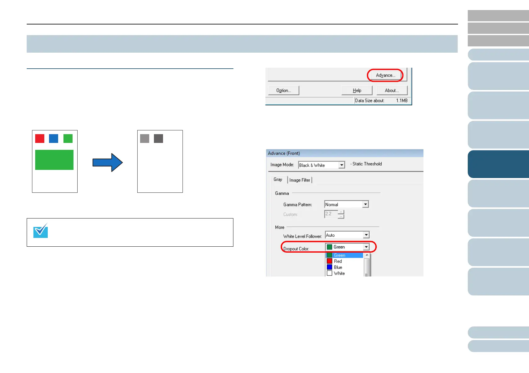 To drop out a desired color, select [Custom], [Custom 2], or [Custom