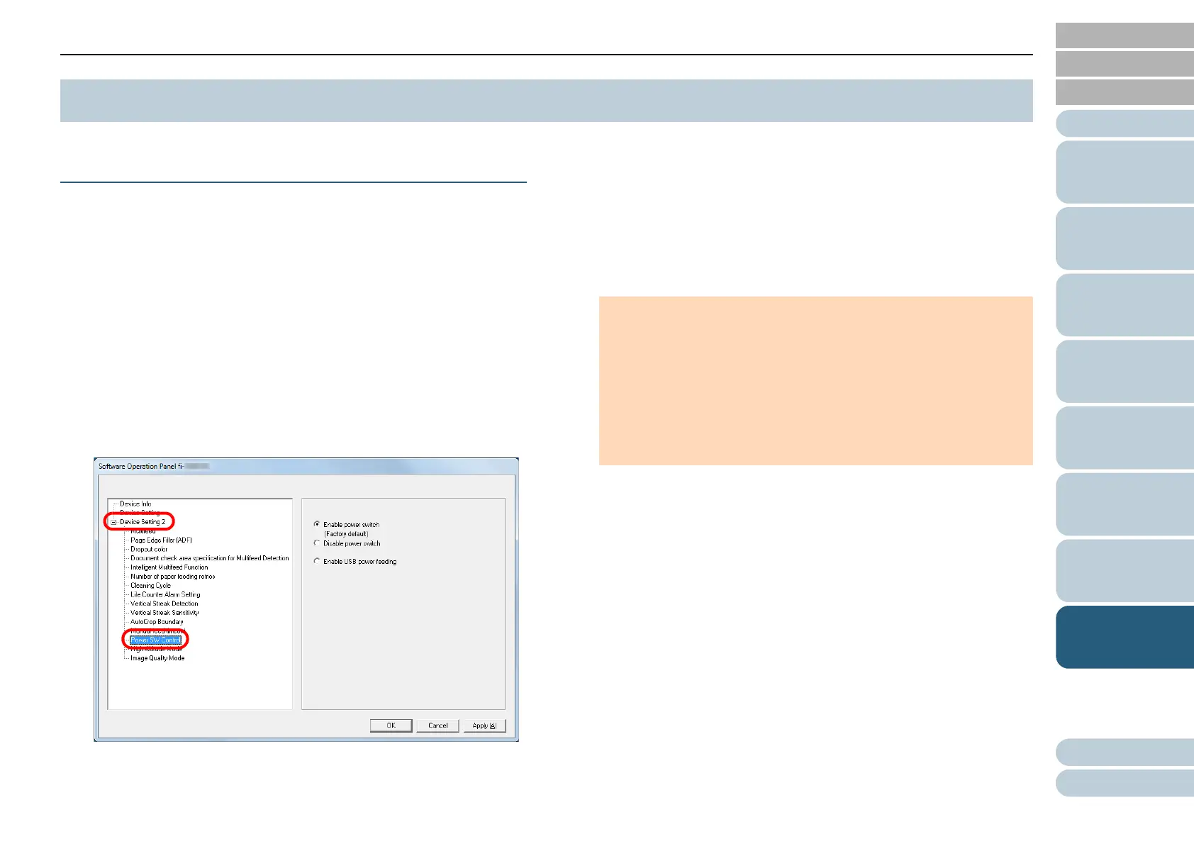 [Enable USB power feeding]: Turn on/off the scanner in accordance
