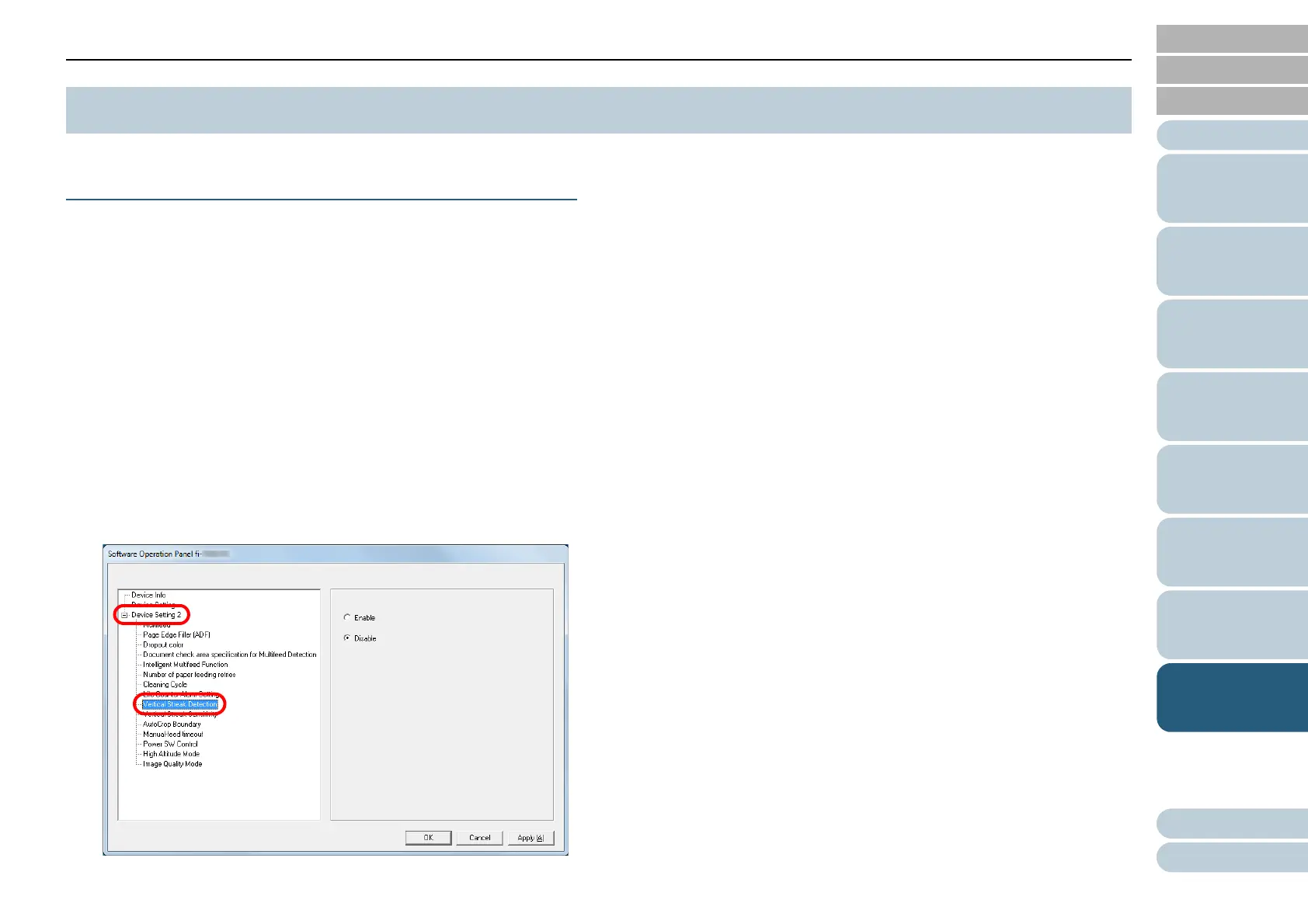 When you select [Enable], the scanner detects vertical streaks (dirt