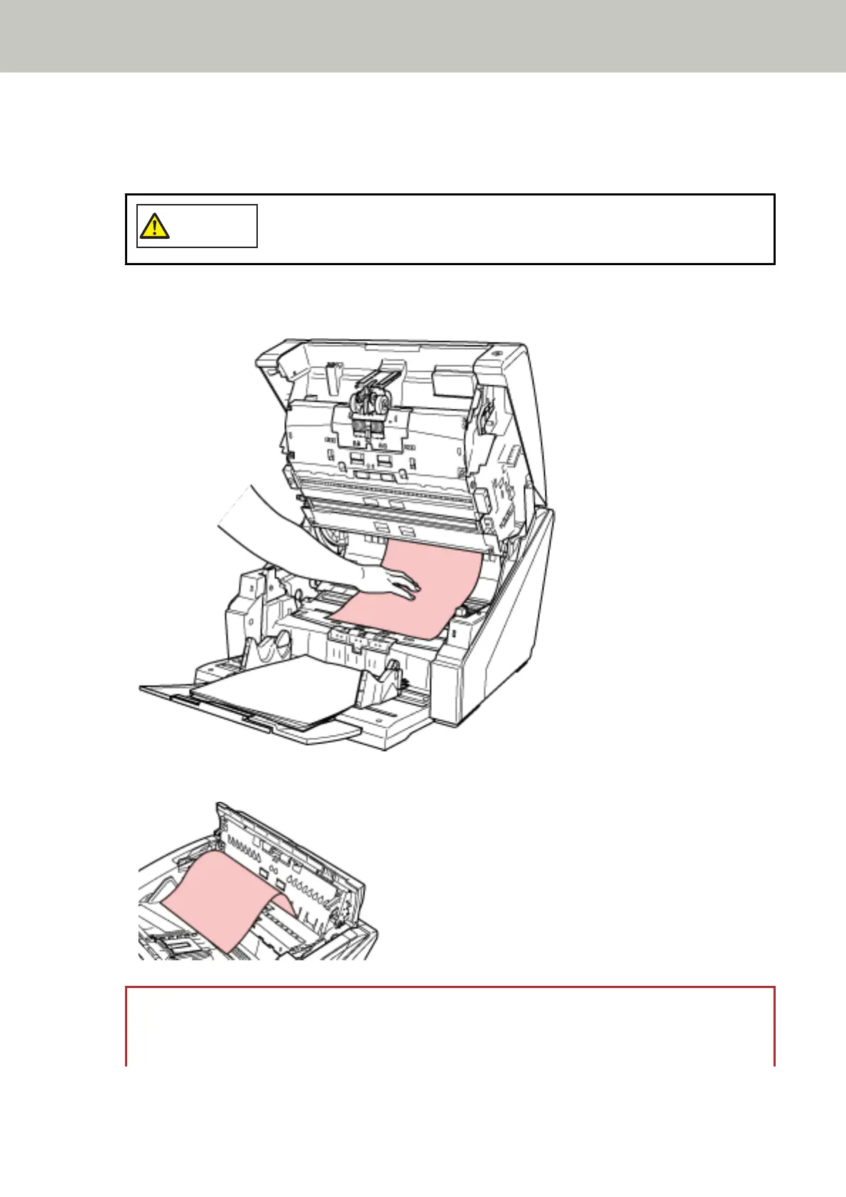 ● When a document is jammed in the paper path, be careful not to damage the document if you are