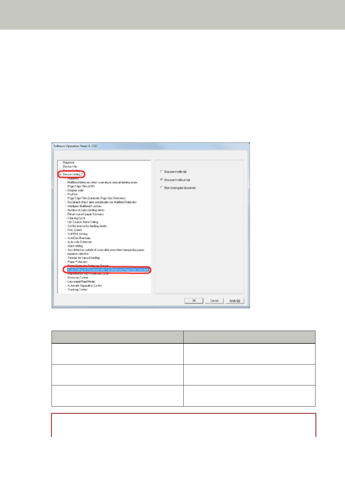 Setting for Document with Tab (Automatic Page Size Detection)]
