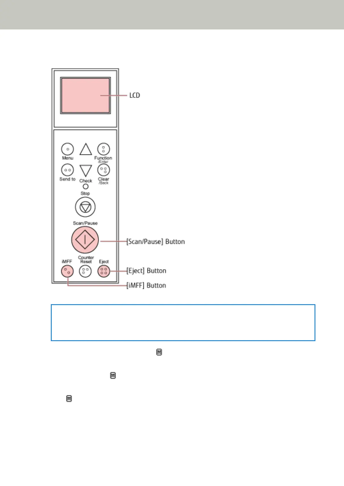 3 Press the [iMFF] button and confirm that is displayed on the LCD, and then press the [Scan/Pause]