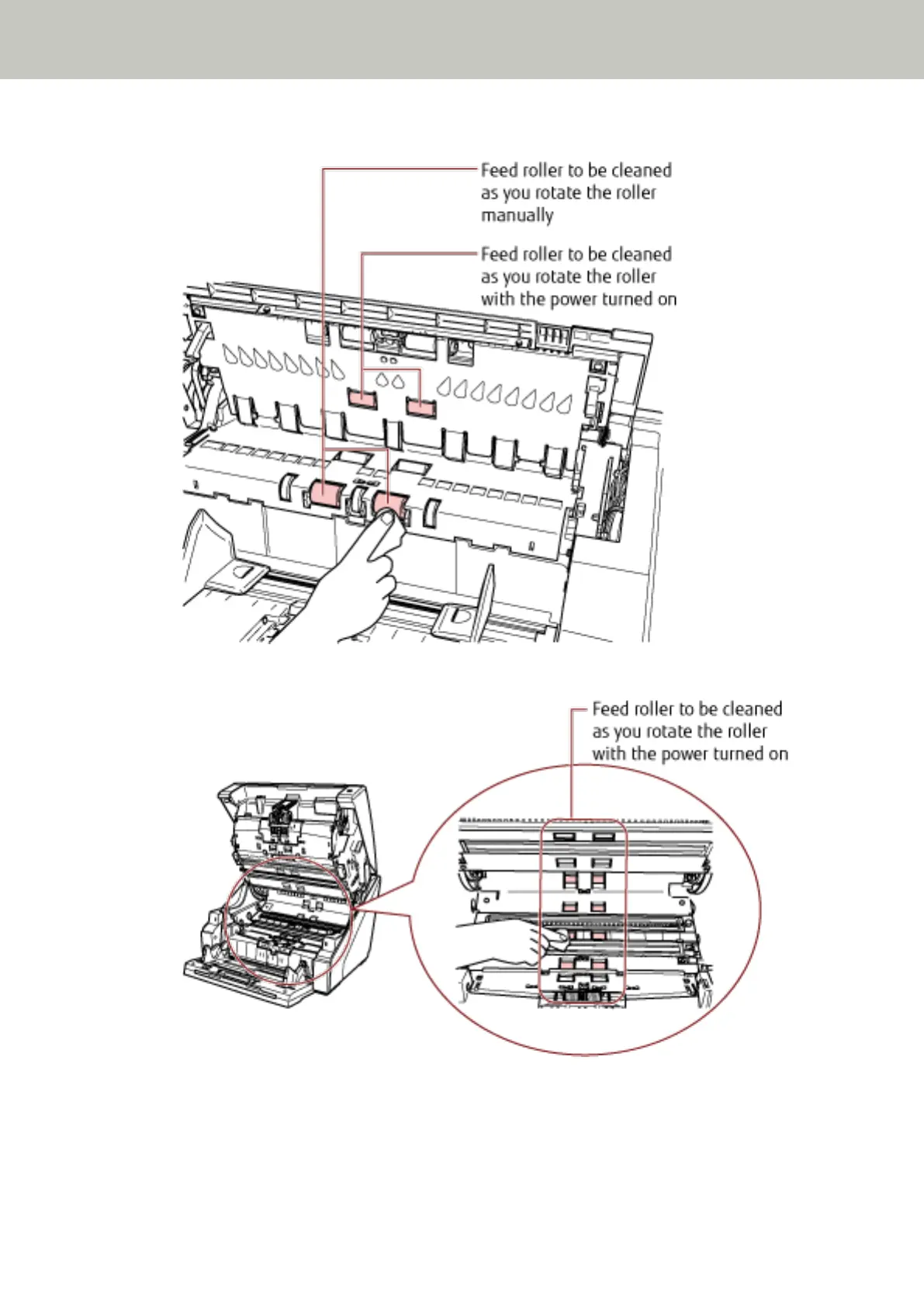 Inside the top cover (rollers: 2 locations × 2 units)